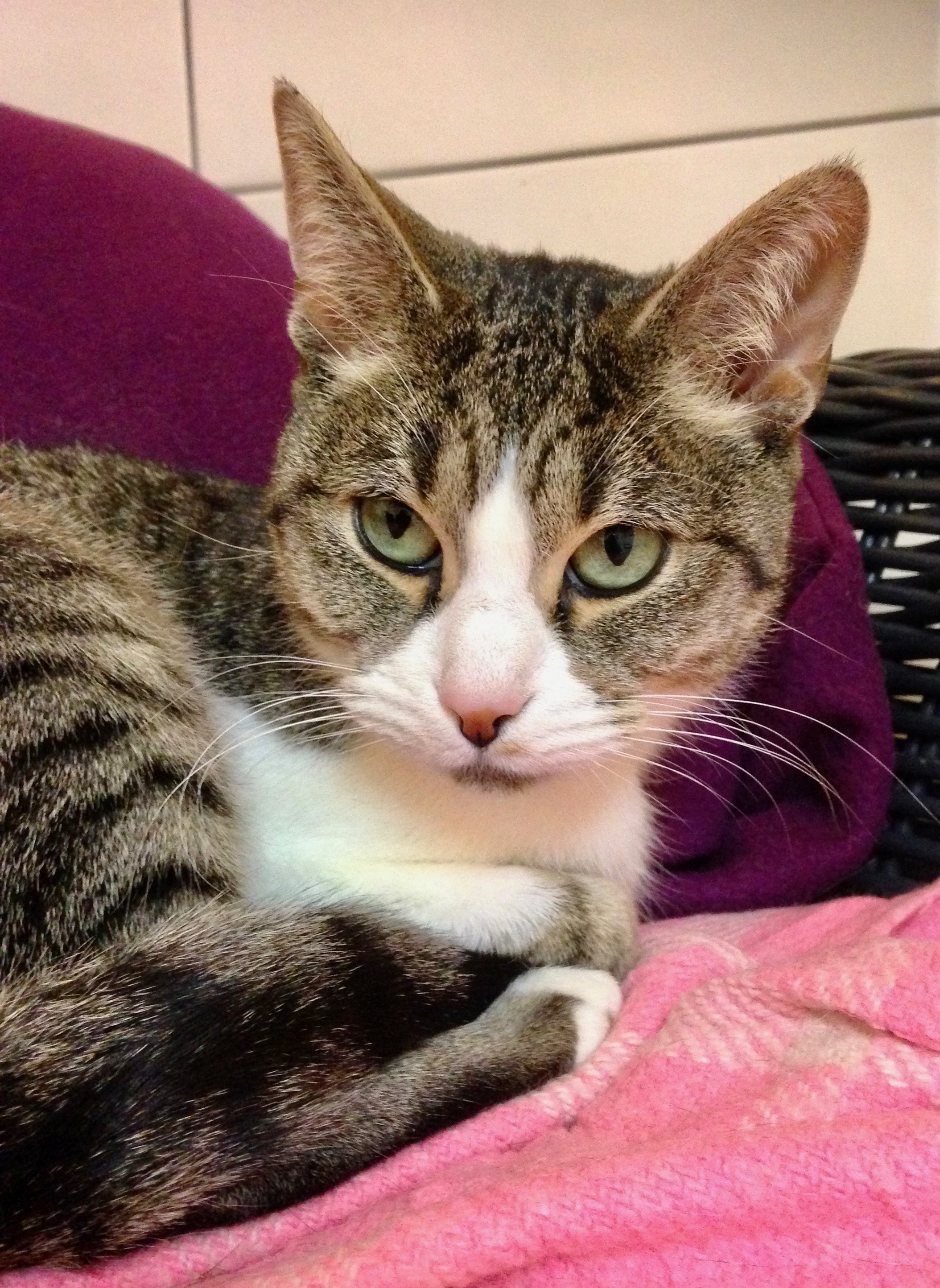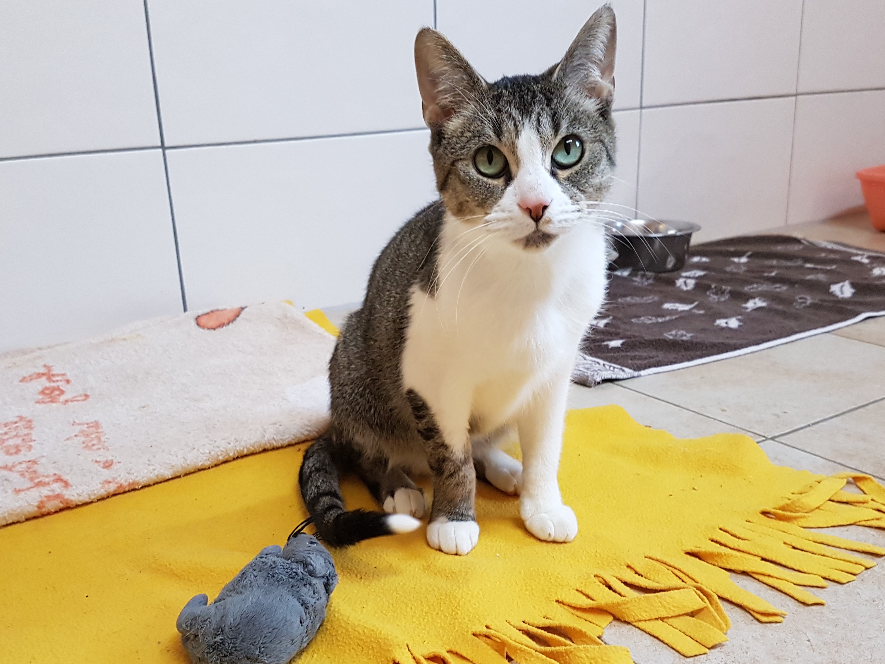 Sie zog, nachdem sie hier dem Katzenkindergarten entwöhnt war, in ihr erstes Zuhause, gemeinsam mit ihrer gleichaltrigen, ebenfalls im Tierheim geborenen Freundin.