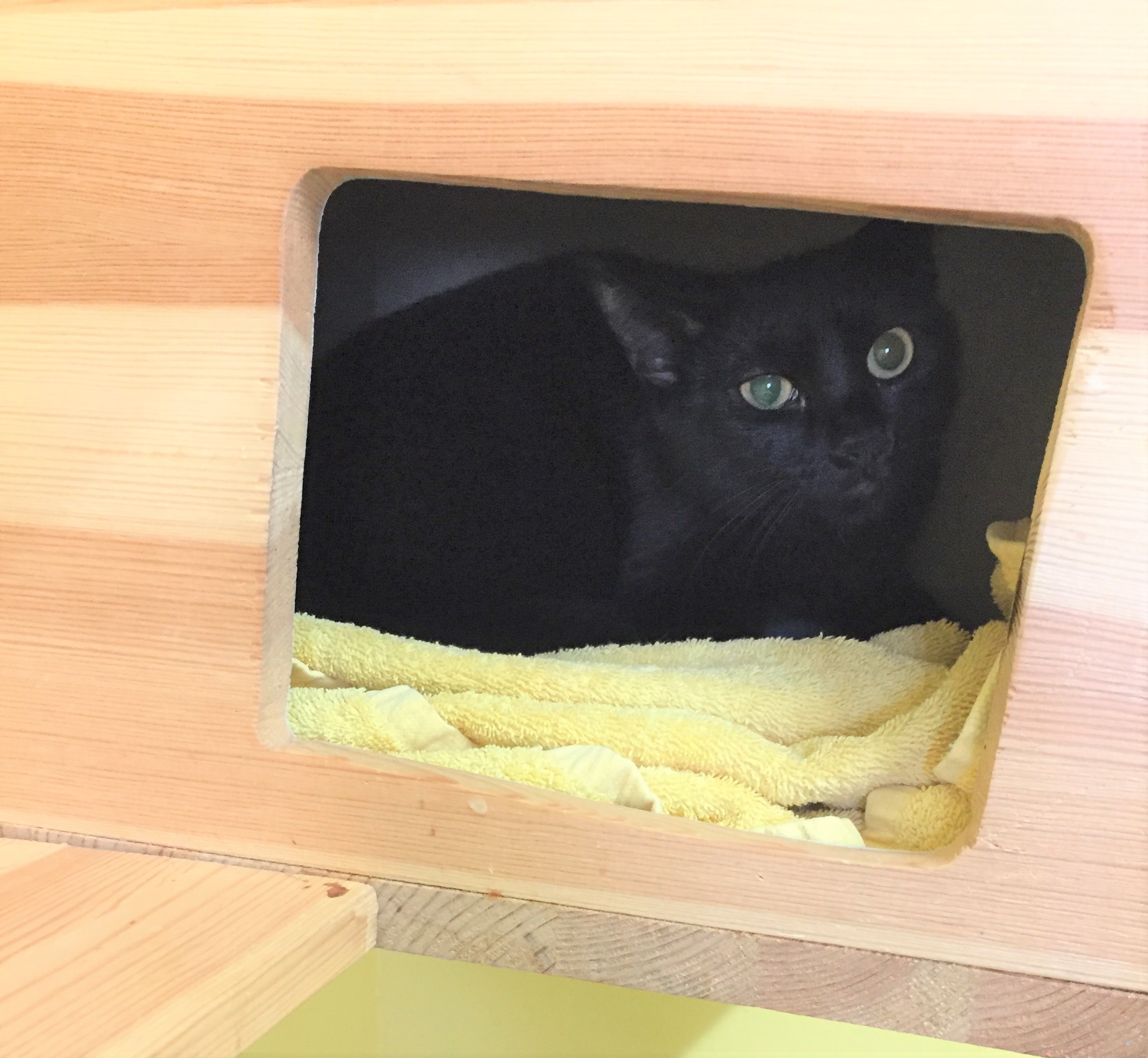 Die schwarze junge Katzendame war zu Beginn ihres Aufenthaltes bei uns zunächst recht schüchtern und Menschen gegenüber mehr als skeptisch. Kam man ihr zu nahe, dann fauchte sie erst einmal vorsorglich und zog sich lieber ängstlich zurück. Mit der Zeit entwickelte sich die kleine Fellnase aber wunderbar und wurde immer zutraulicher. Sie begann, durch die Stube zu tollen, lag gerne auf der Fensterbank und entspannte sich zusehends. Nur die Sache mit dem Streicheln war ihr ganz und gar nicht geheuer – dabei sein ja – anfassen bitte nicht.
