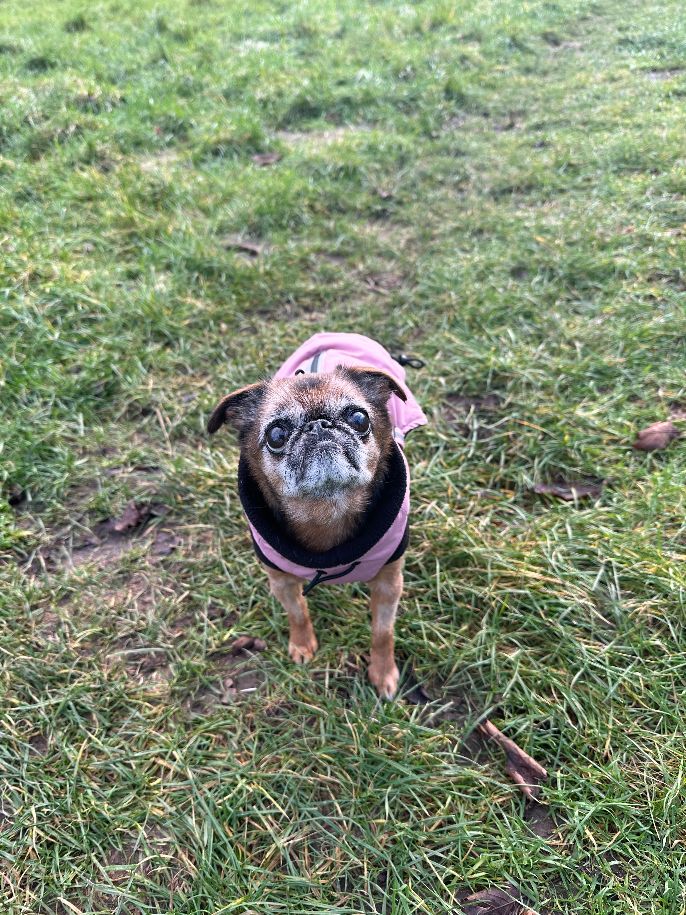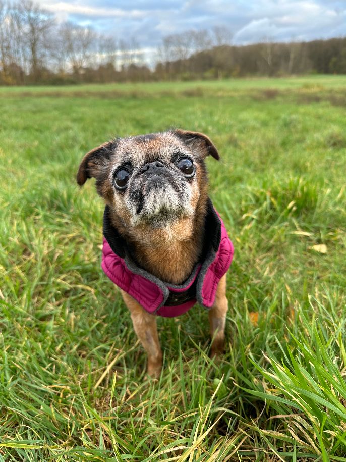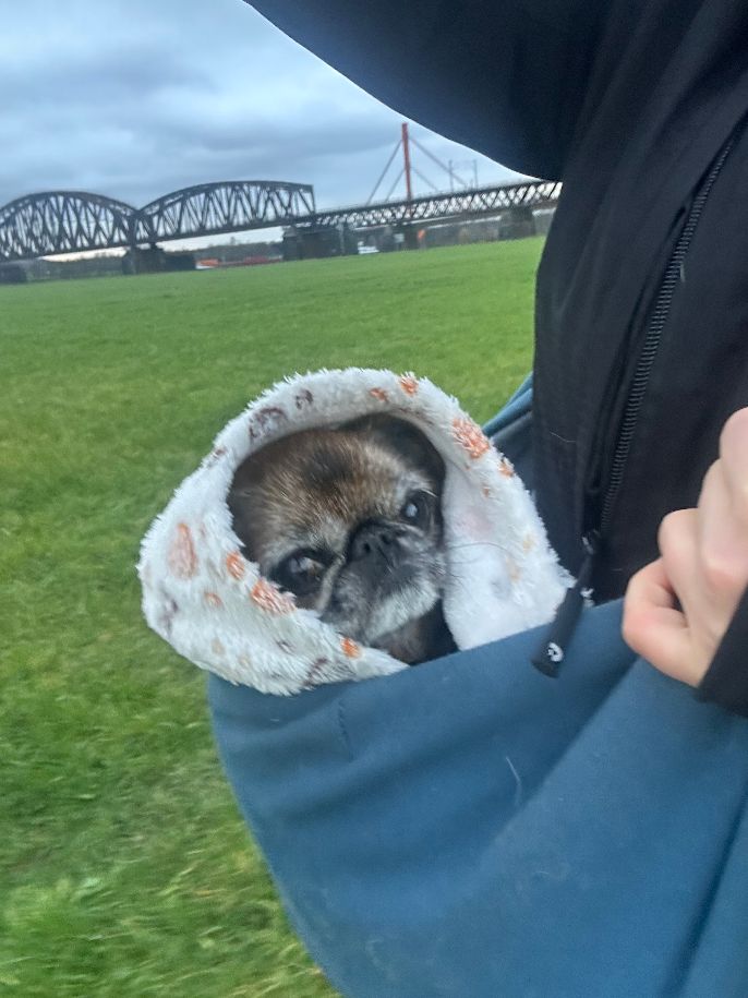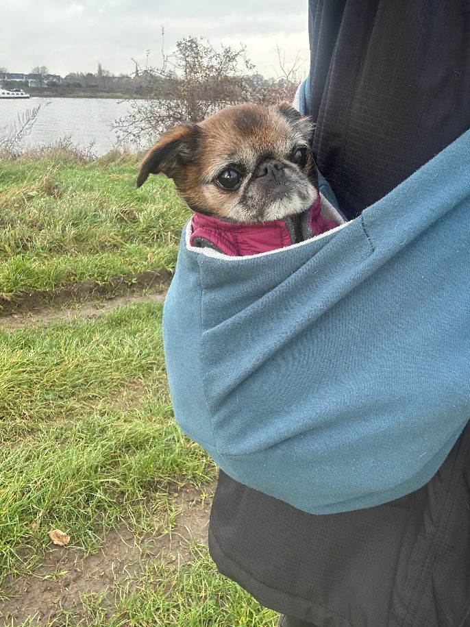 Durch die Probleme an der Bandscheibe ist Antje nicht mehr so mobil wie andere Hunde in ihrem Alter. Wenn es auf einen Spaziergang geht freut sie sich dennoch riesig und genießt die neuen Eindrücke. Da lange Märsche nicht mehr möglich sind, ist Antje an eine Trage gewöhnt. So kann sie kurze Strecken in ihrem Tempo laufen und ausgiebig schnüffeln und sich dann in ihrer Trage ausruhen. Ein Zuhause mit einem Garten wäre für Antje wirklich optimal.