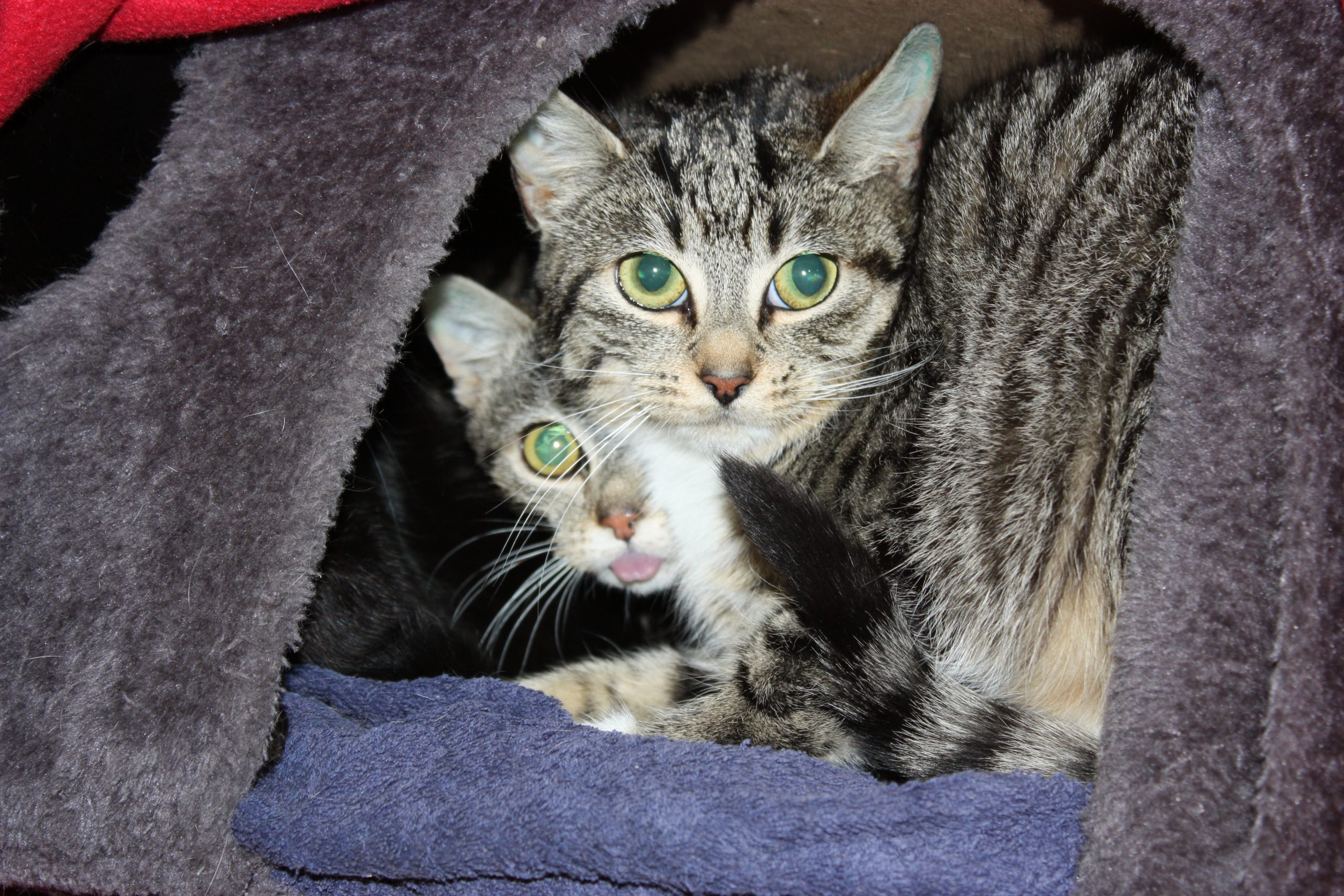 Liebe Athena, lieber Nero, Ihr habt ein prima Zuhause gefunden, in dem ihr umsorgt werdet, Euch aber gleichzeitig auch viel Raum zum Eingewöhnen gelassen wird. Jetzt bekommt Ihr Leckerchen und viel gutes Futter – und liebe Athena, lass Nero was über! Ihr habt Geborgenheit und Freiheit gleichermaßen gefunden, habt viele Verstecke und Kuschelecken und könnt gemeinsam das Leben entdecken. Und wenn Ihr Euch eingewöhnt habt, winkt die Natur ringsum und lädt zu schönen Streifzügen ein.