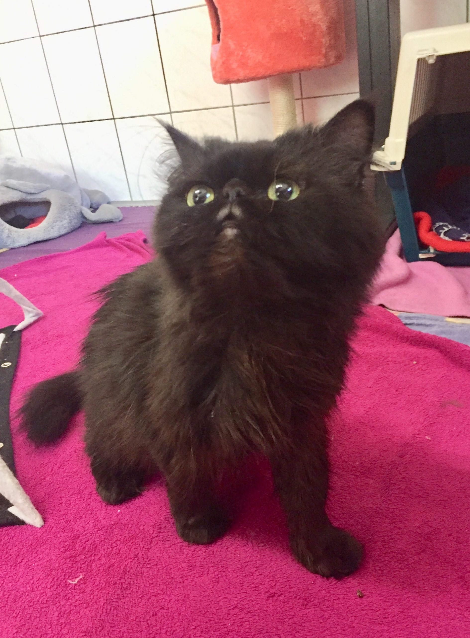 Die zarte Perserdame Baffy kam gemeinsam mit ihren Babys zu uns ins Tierheim und die kleine Familie musste erst einmal ordentlich gepäppelt werden.