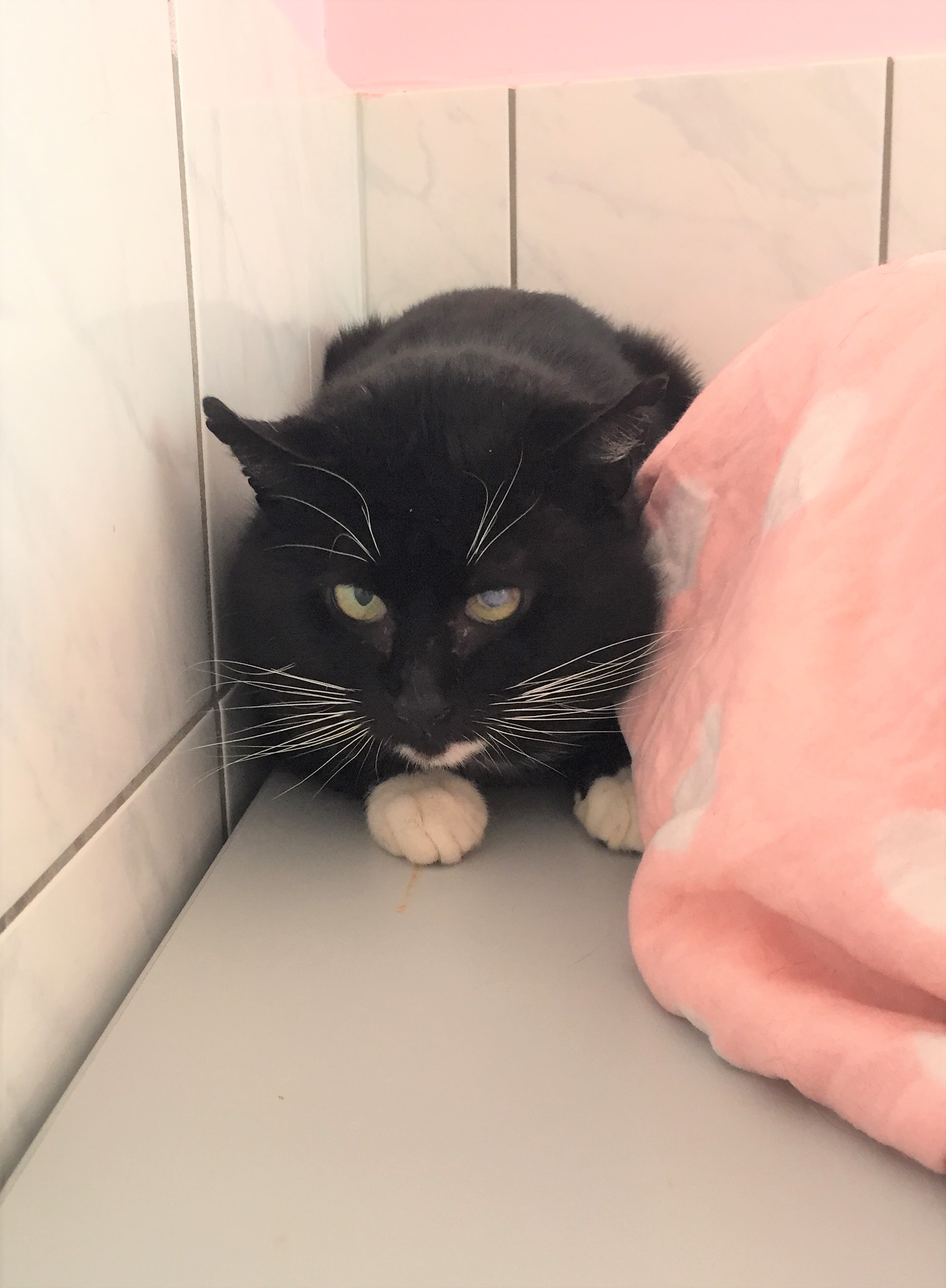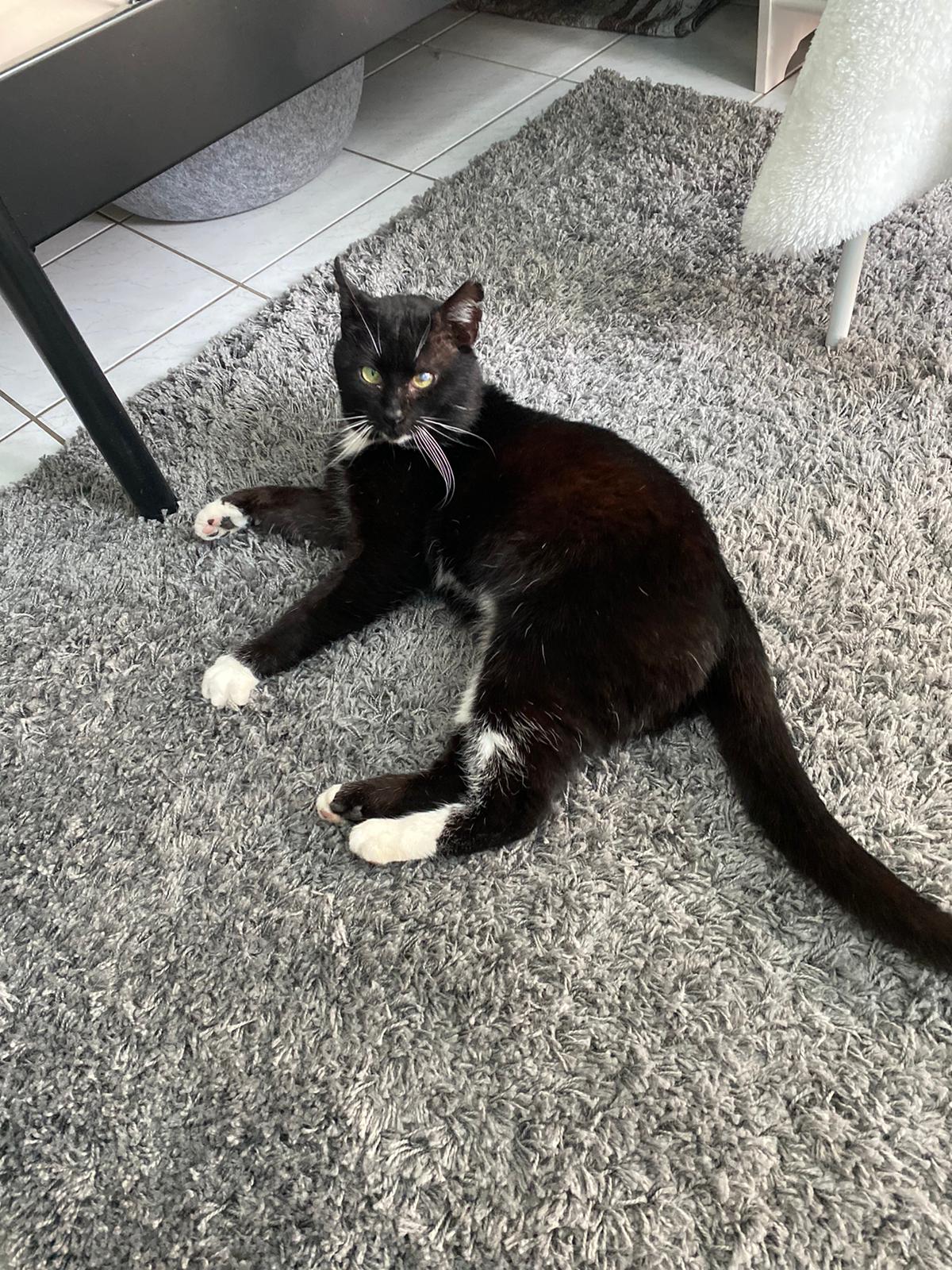 Der stattliche schwarz-weiße Kater war zunächst erst einmal skeptisch, wenn man sich ihm näherte und auch sein Äußeres lässt vermuten, dass er nicht nur gute Erfahrungen in seinem Leben gemacht hat. Trotzdem ist er freundlich und einer Kontaktaufnahme nicht abgeneigt. Auch die ein oder andere vorsichtige Streicheleinheit kann er mittlerweile schon genießen.