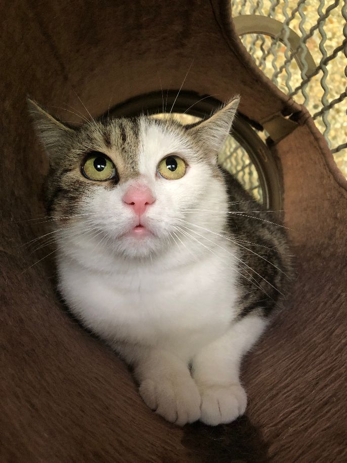 Danach war die hübsche getigert-weiße Kätzin auf der Suche nach einem eigenen Zuhause, doch sie zeigte sich im Umgang mit Menschen scheu und skeptisch. Zwar machte Bavette deutliche Fortschritte und gerade, wenn Leckerchen im Spiel waren, vergaß sie schon mal ihre Schüchternheit – aber eine Schmusekatze wurde sie nicht.