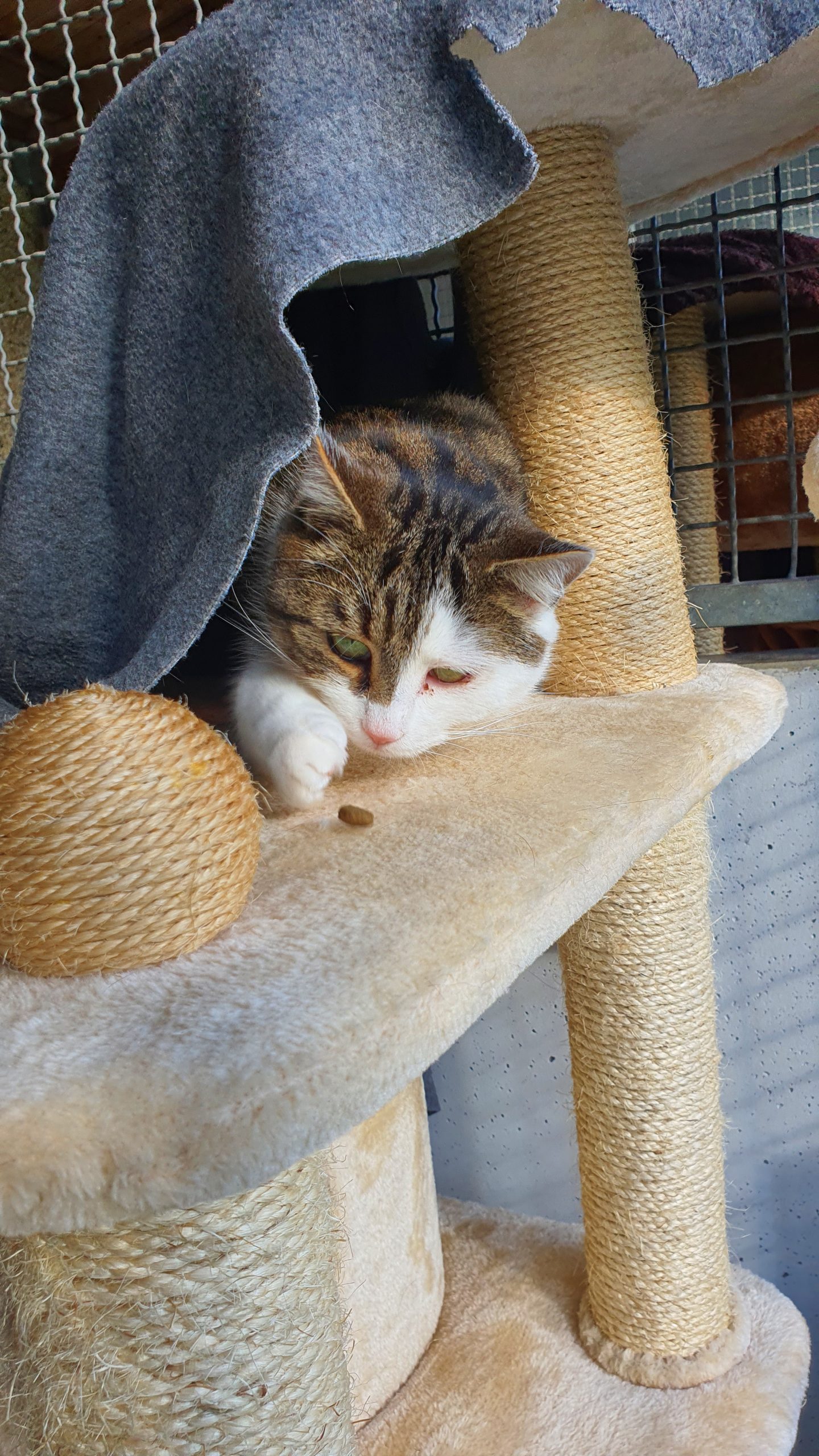 Bavette war im Vorjahr gemeinsam mit ihren sechs Kitten gefunden und zu uns ins Tierheim gebracht worden. Hier konnte sie sich erst einmal von den Strapazen der Geburt erholen und in Ruhe und Sicherheit ihren Nachwuchs versorgen und aufziehen.