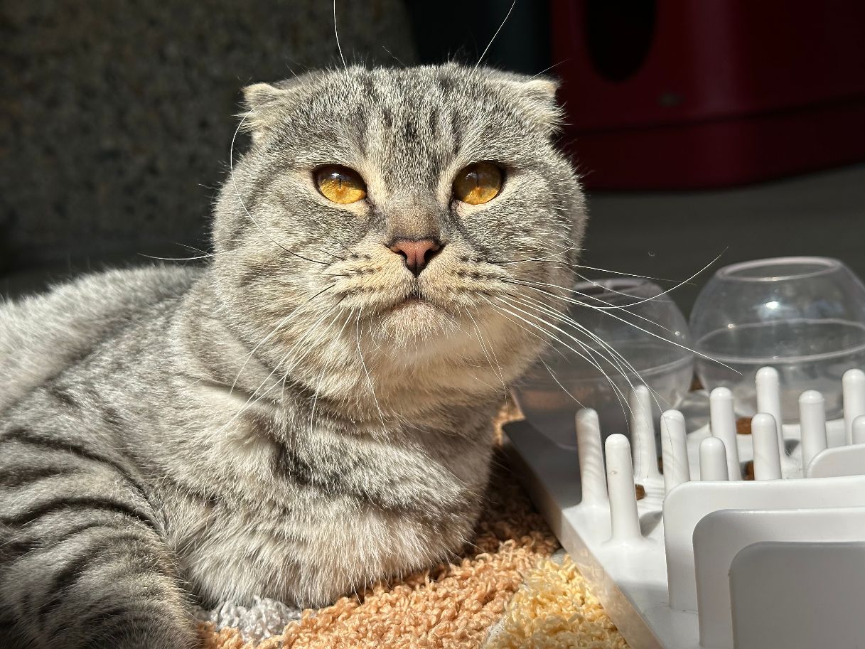 Leider zählt er als Scottish Fold Katze zu den Qualzuchten. Bei einem Röntgen wurden bereits Arthrosen festgestellt. Interessenten sollten sich daher mit dieser Thematik auseinandersetzen.