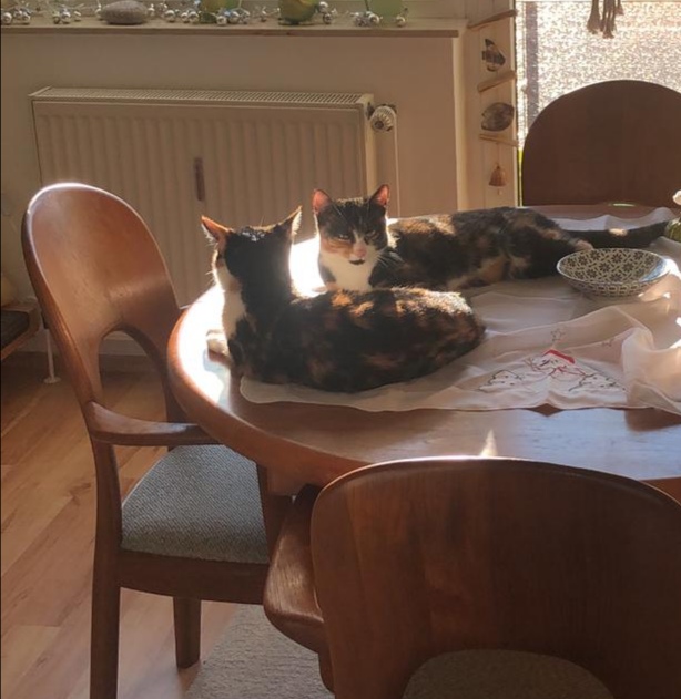 Und wie wir schon erfahren durften – denn Eure Adoptivmama hat uns schon schöne Fotos geschickt – habt Ihr einen ganz unerwarteten Lieblingsplatz auf dem Tisch gefunden. Toll, dass Ihr Euch so wohl fühlt!