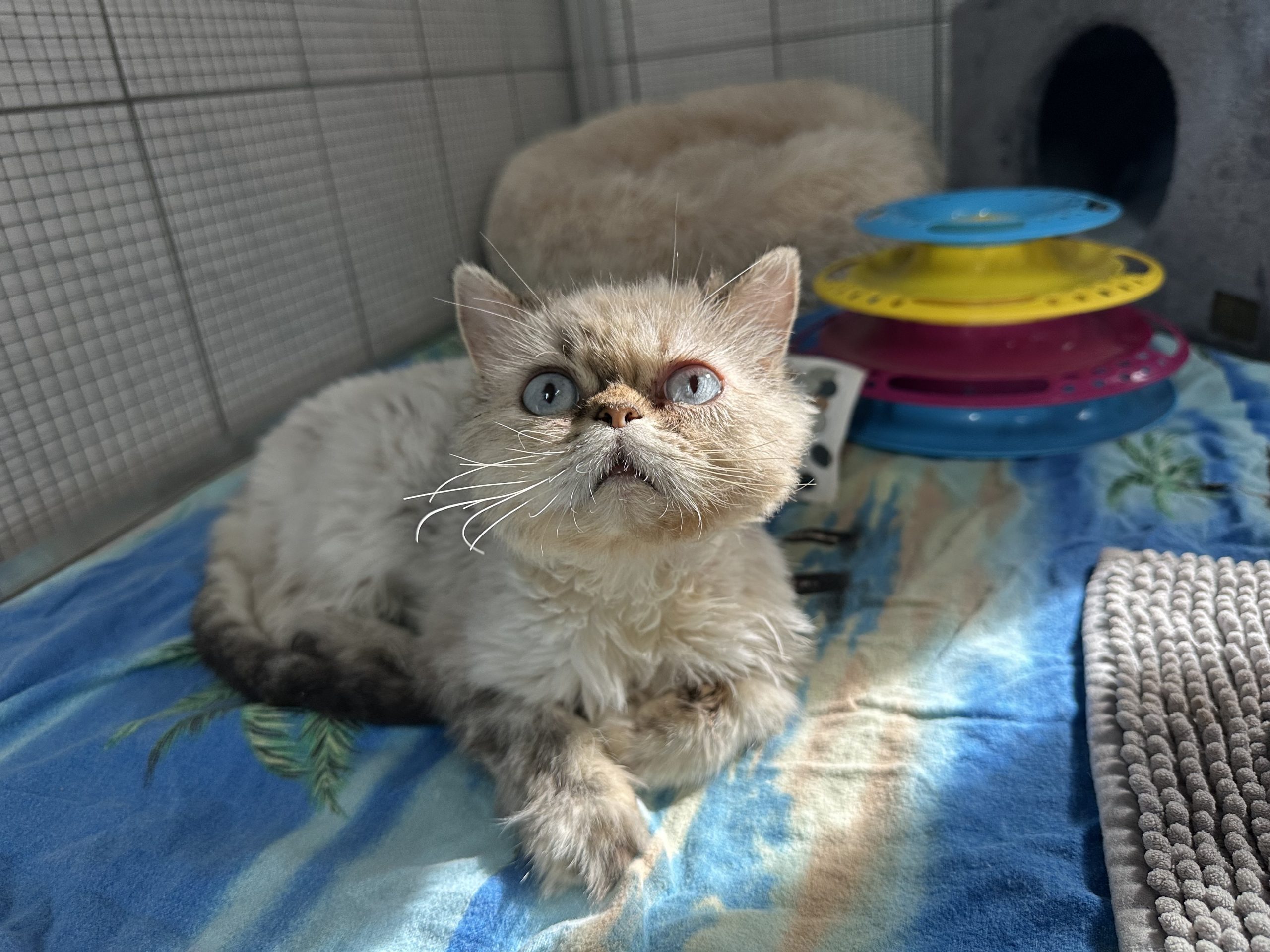 Unsere Bora ist lieb und verschmust und sucht nach einem neuen Zuhause mit passender Katzengesellschaft. Allergiebedingt benötigt sie eine spezielle Futtersorte und rassetypisch muss die Fell- und Augenpflege regelmäßig erfolgen.