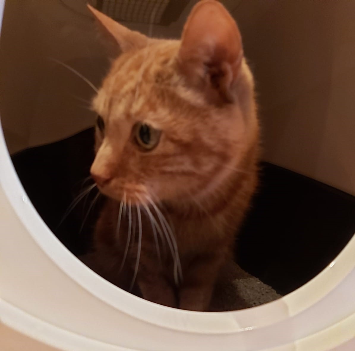 Die Frau, die mich abholen kam, hatte ich vorher 2x im Tierheim gesehen. Frau Tina heißt sie. Die Autofahrt war recht lang und Frau Tina hat mir viel erzählt. Irgendwann hielten wir an, die Menschenfrau trug mich eine Treppe hoch, stellte die Box auf den Boden und öffnete die Tür: Ein großes Zimmer sah ich, mit einem kleinen Häuschen. Da bin ich schnell rein. Hab dann festgestellt, dass es mein Klo ist. Mit Dach! Toll, denn jetzt schaut mir keiner mehr beim Pieseln zu. Ich blieb da erstmal und hab Probesitzen gemacht. Frau Tina hat mir was Leckeres als Willkommenssnack gereicht. Toller Service. Irgendwann war ich doch neugierig und bin dann losgezockelt, um mir die anderen Räumlichkeiten anzuschauen. Ganz toll alles, viele gemütlich aussehende Plätze. Abends bin ich dann auch auf die Couch zu Frau Tina und Herrn Henning gesprungen. Die haben mich gekrault und beschmust. Soooo schön. Und stellt Euch vor: Ich durfte auch in die Schlafstätte der Menschen! Sehr sehr gemütlich und ausreichend Platz für uns Drei.