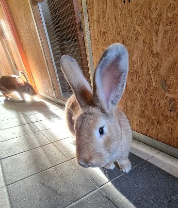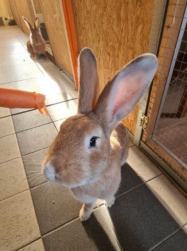 2 Rasse: Riesen-MixFarbe: rotbraunGeb.-Datum: 04.2021Geschlecht: männlichKastriert: ja, 28.10.2021Im Tierheim seit: 06.09.2021 Crueso hat ein tolles Zuhause gefunden, dass er nun gemeinsam mit einer netten Kaninchendame bewohnen darf.
