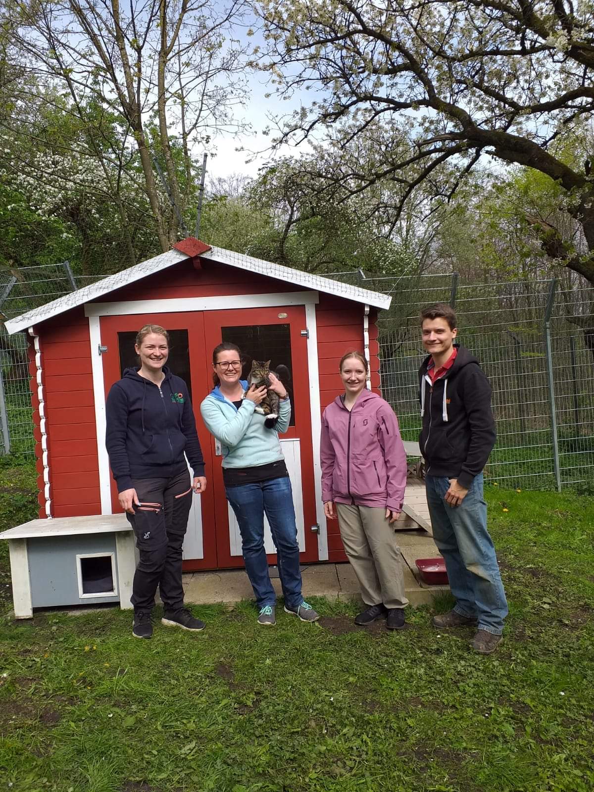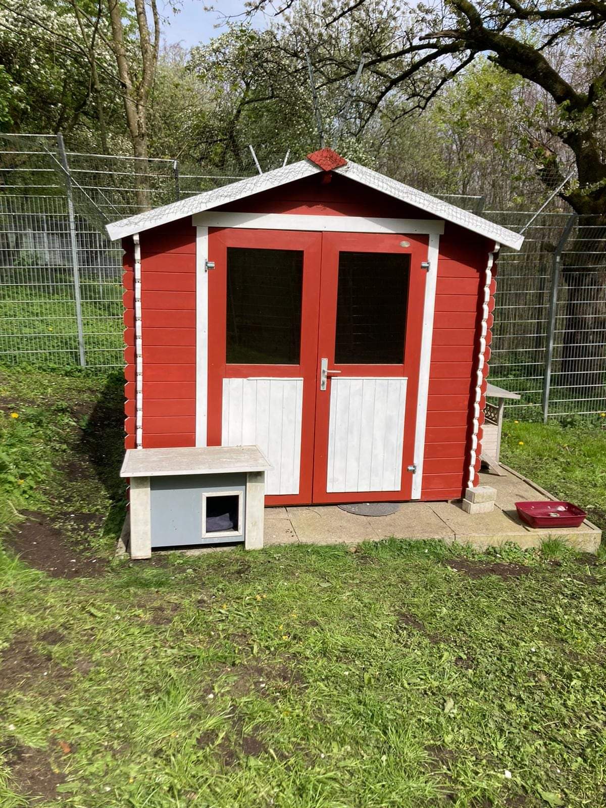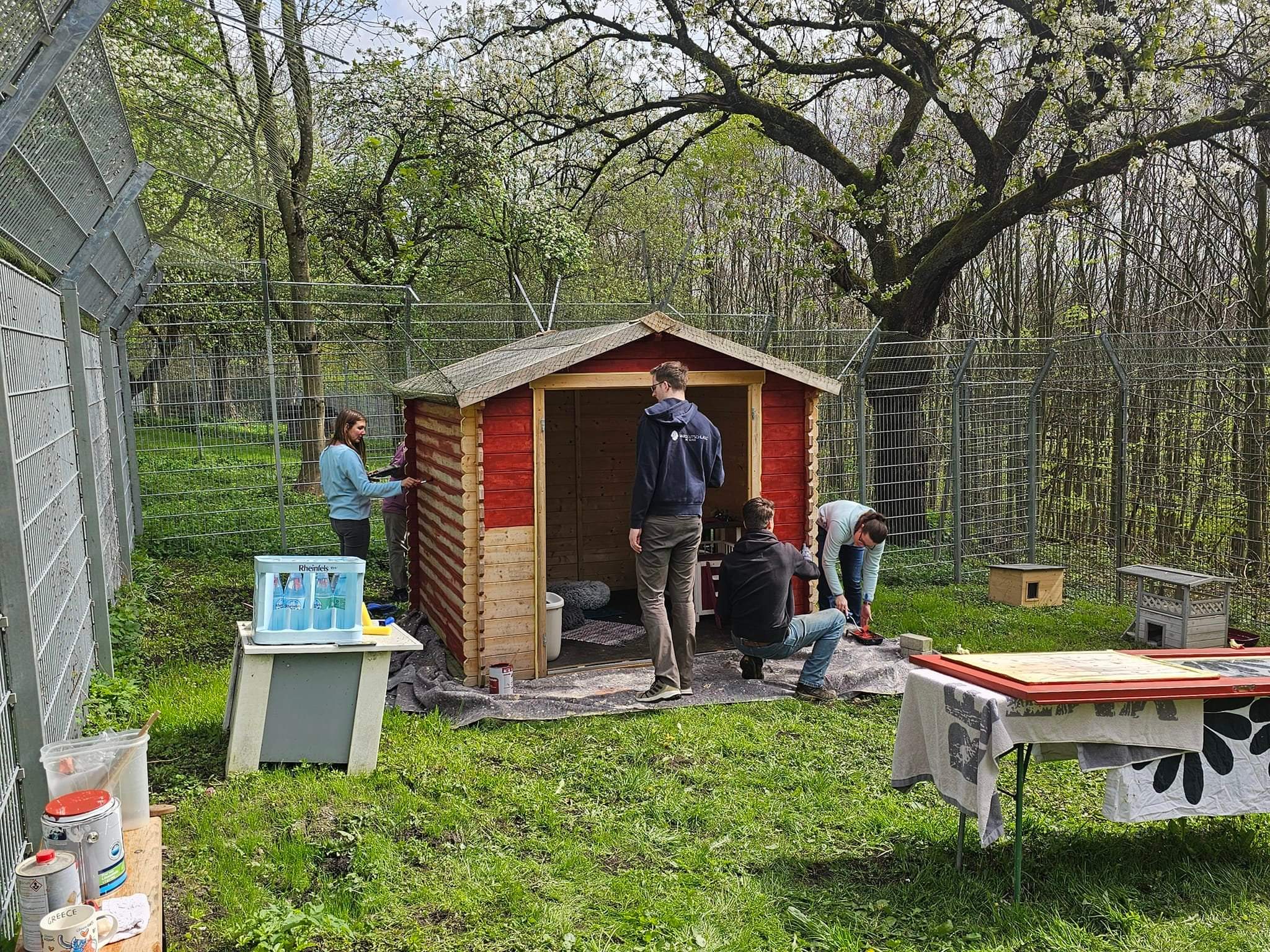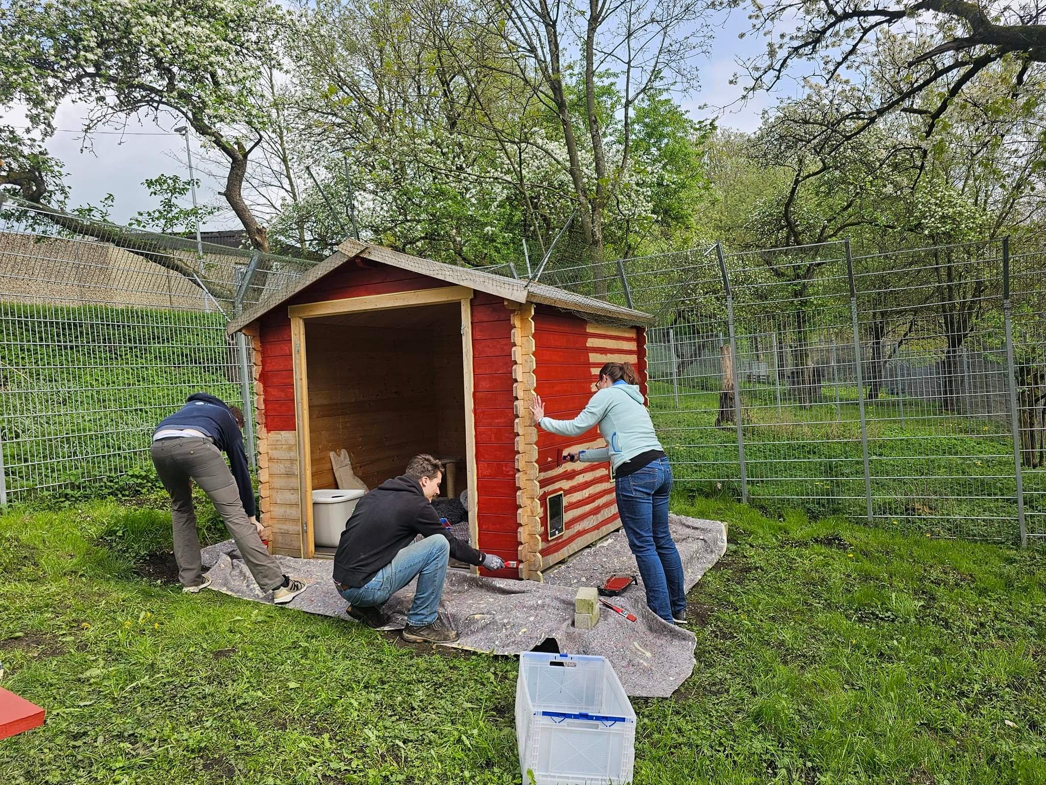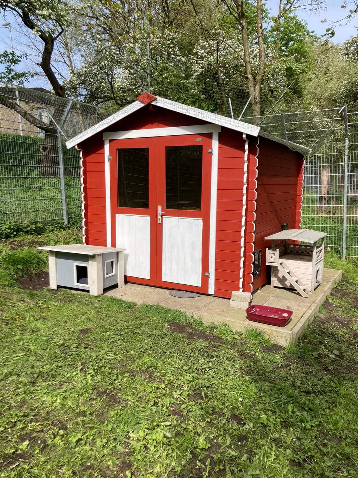 Die Hütte im Katzen-Freigehege bekam einen tollen roten Anstrich.