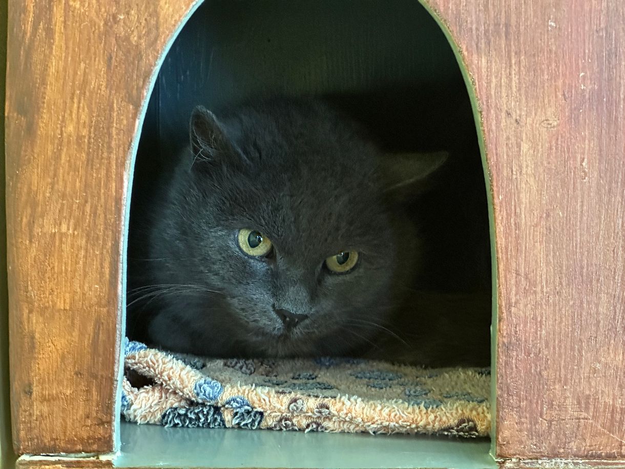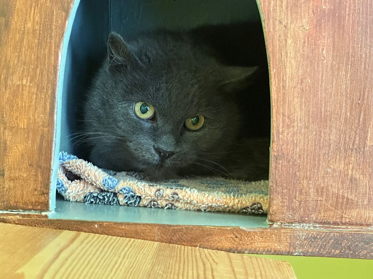 Draculi ist noch sehr schüchtern und benötigt Zeit und Geduld, um Vertrauen zu fassen. Man spürt, dass sie mit der Situation im Tierheim überfordert ist und daher tut sie sich auch schwer, aus sich herauszukommen.