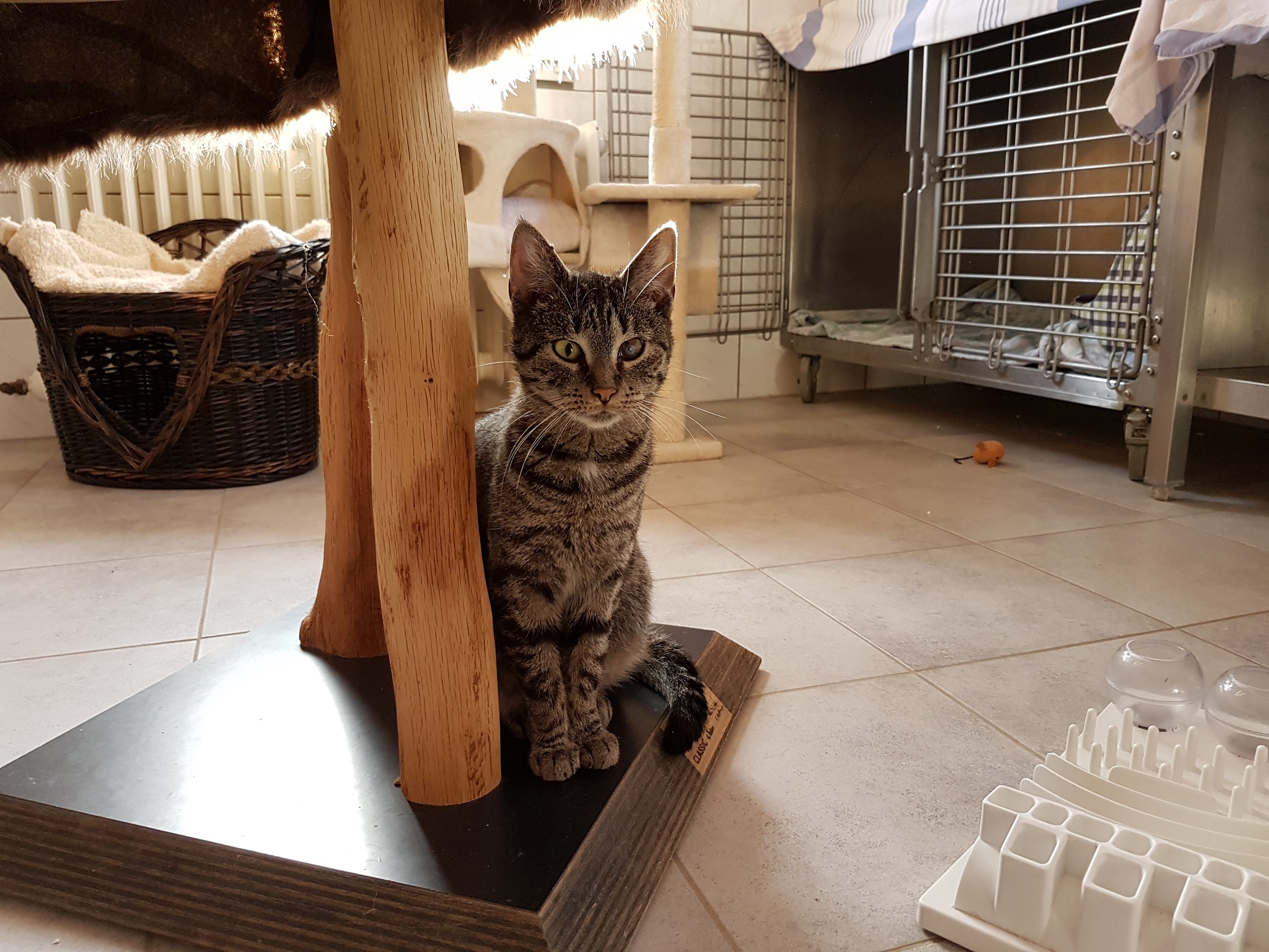 Leider hat sich Erisa mit der neuen Situation erst einmal etwas zurückgezogen. Sie beobachtet allerdings schon wieder neugierig was wir machen. Streicheln lassen möchte sie sich noch nicht aber lange wird es wohl nicht mehr dauern.