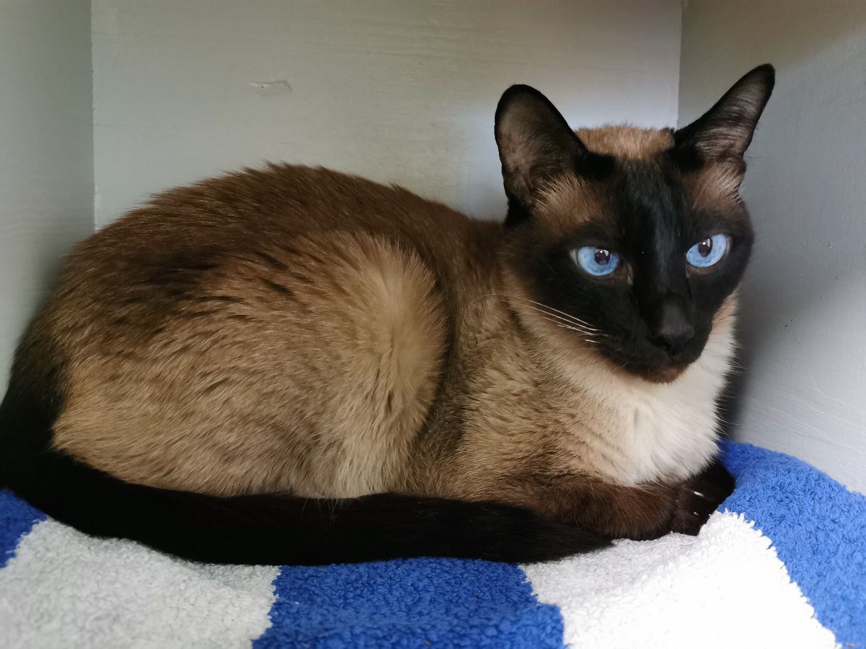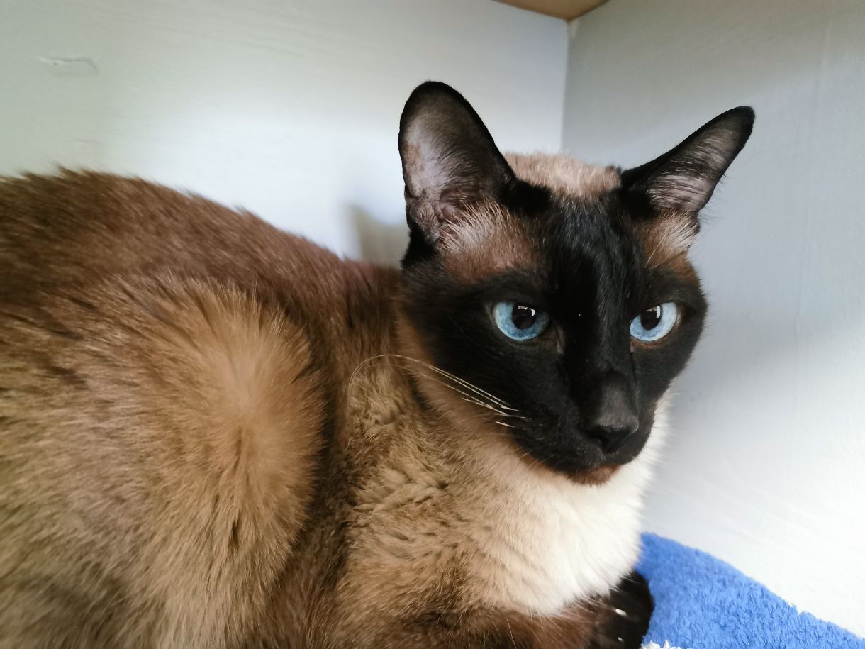 Der schöne Kater war zu Beginn seines Tierheimaufenthaltes eher ängstlich und zurückhaltend – aber dabei immer lieb. Er blieb ruhig liegen, ließ sich sanft streicheln und schenkte einem nach kurzer Zeit der Zuwendung ein leises, zaghaftes Schnurren. Für den sensiblen Siamesen war die ungewohnte Situation in der Katzenstube wohl wie ein „Kulturschock“.