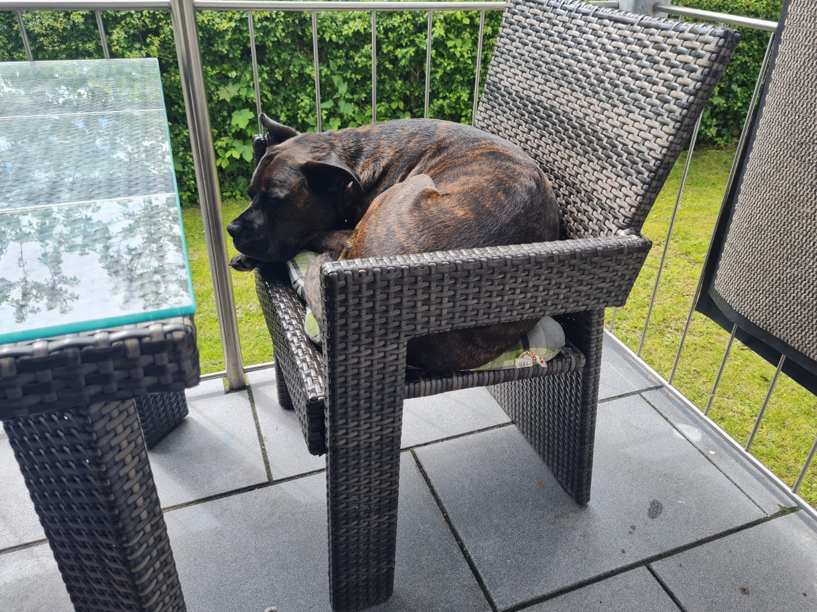 Wir wünschen Happy noch eine tolle Zeit in seiner neuen Familie und viele gemütliche Stuhl-Schlafstellen!