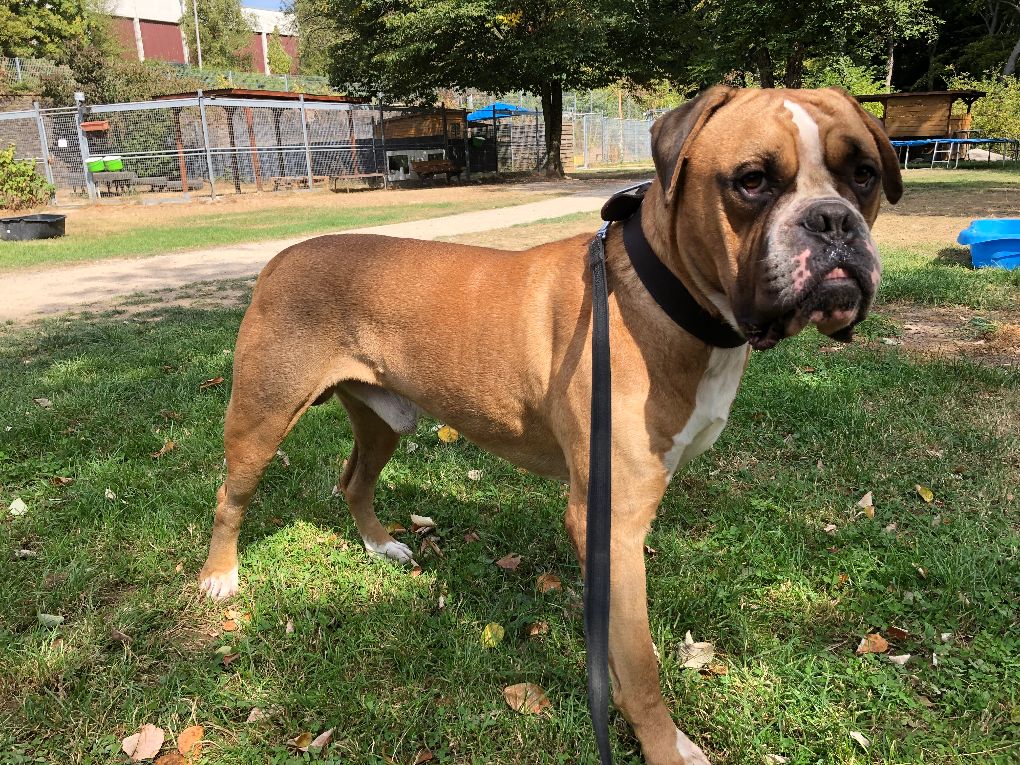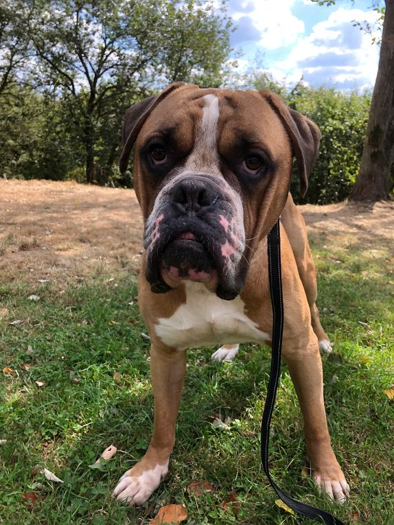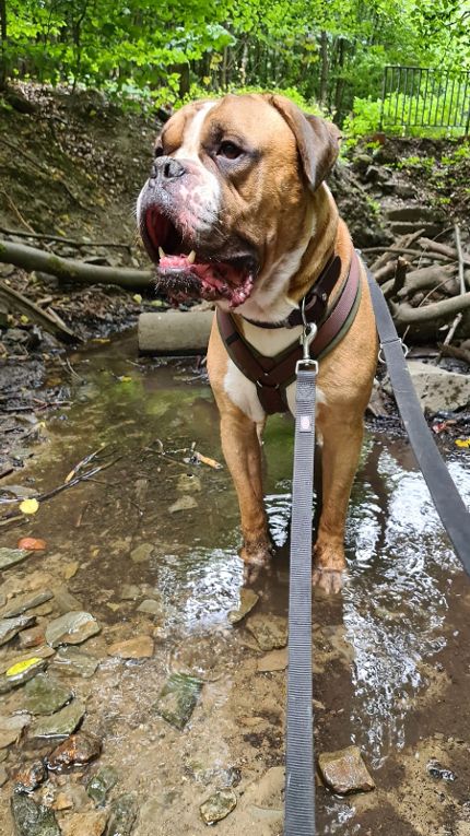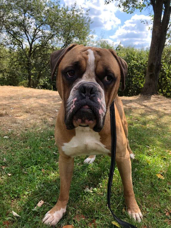 Der Boxer-English-Bulldog-Mix kam als Abgabehund/ Trennungsopfer zu uns!