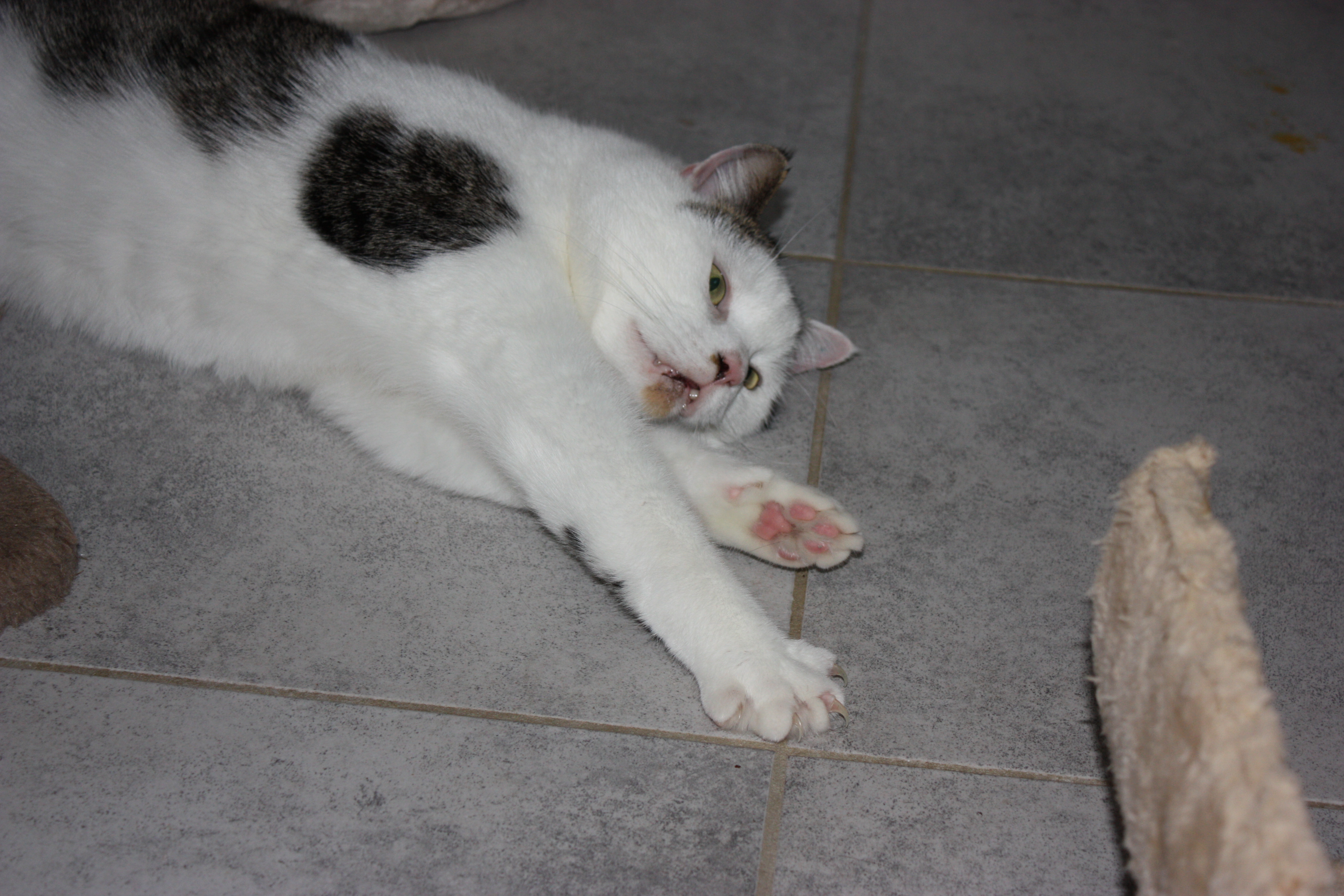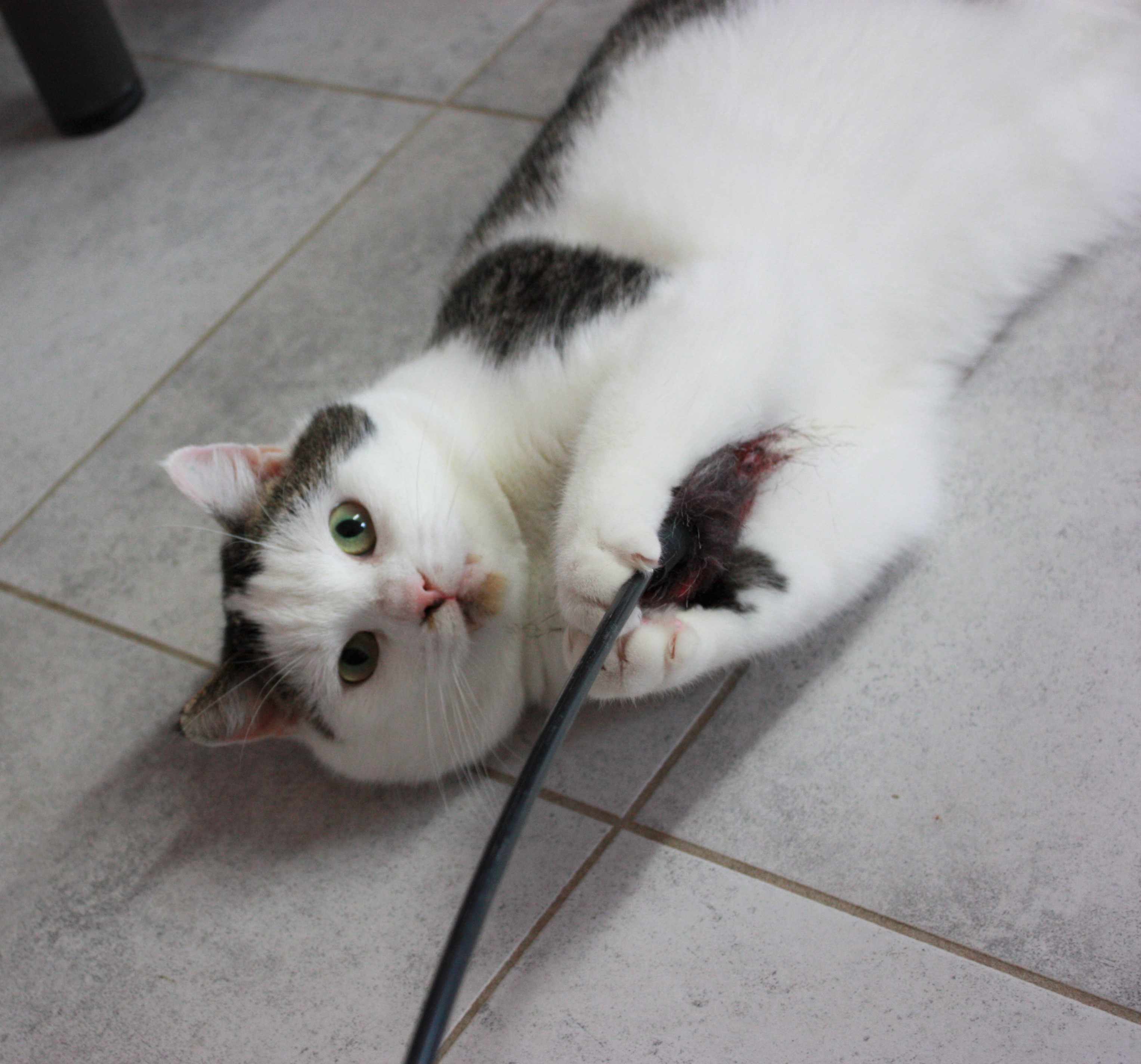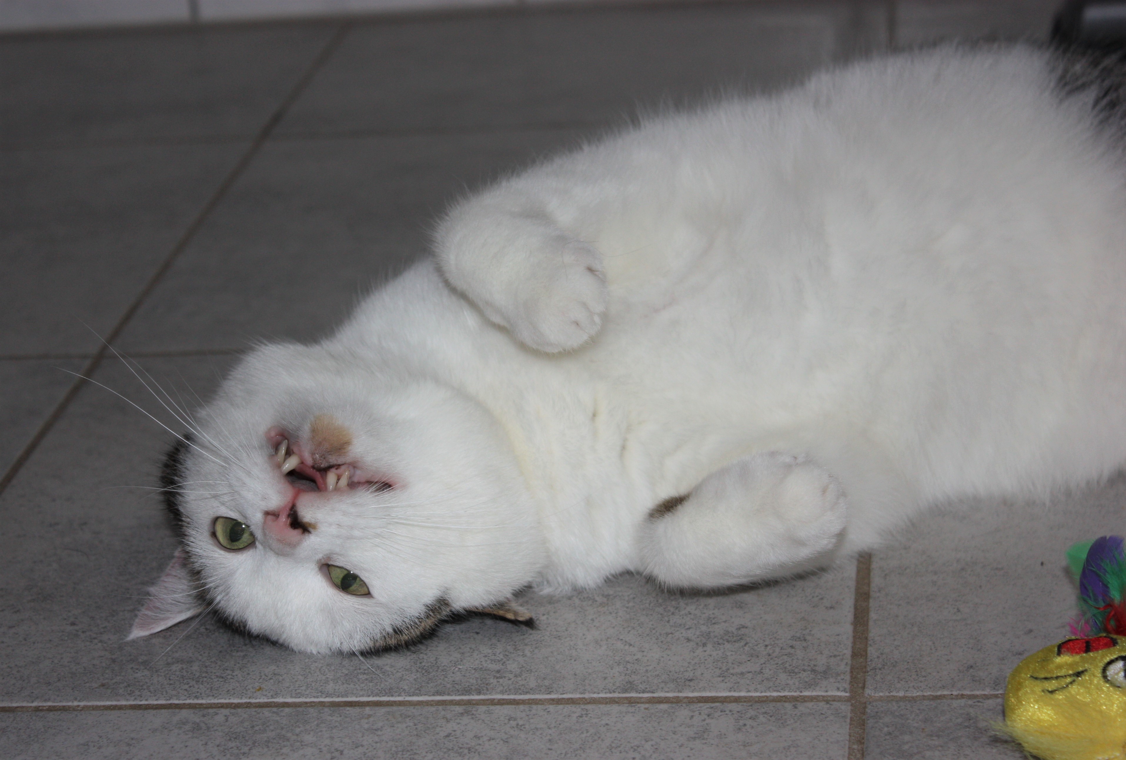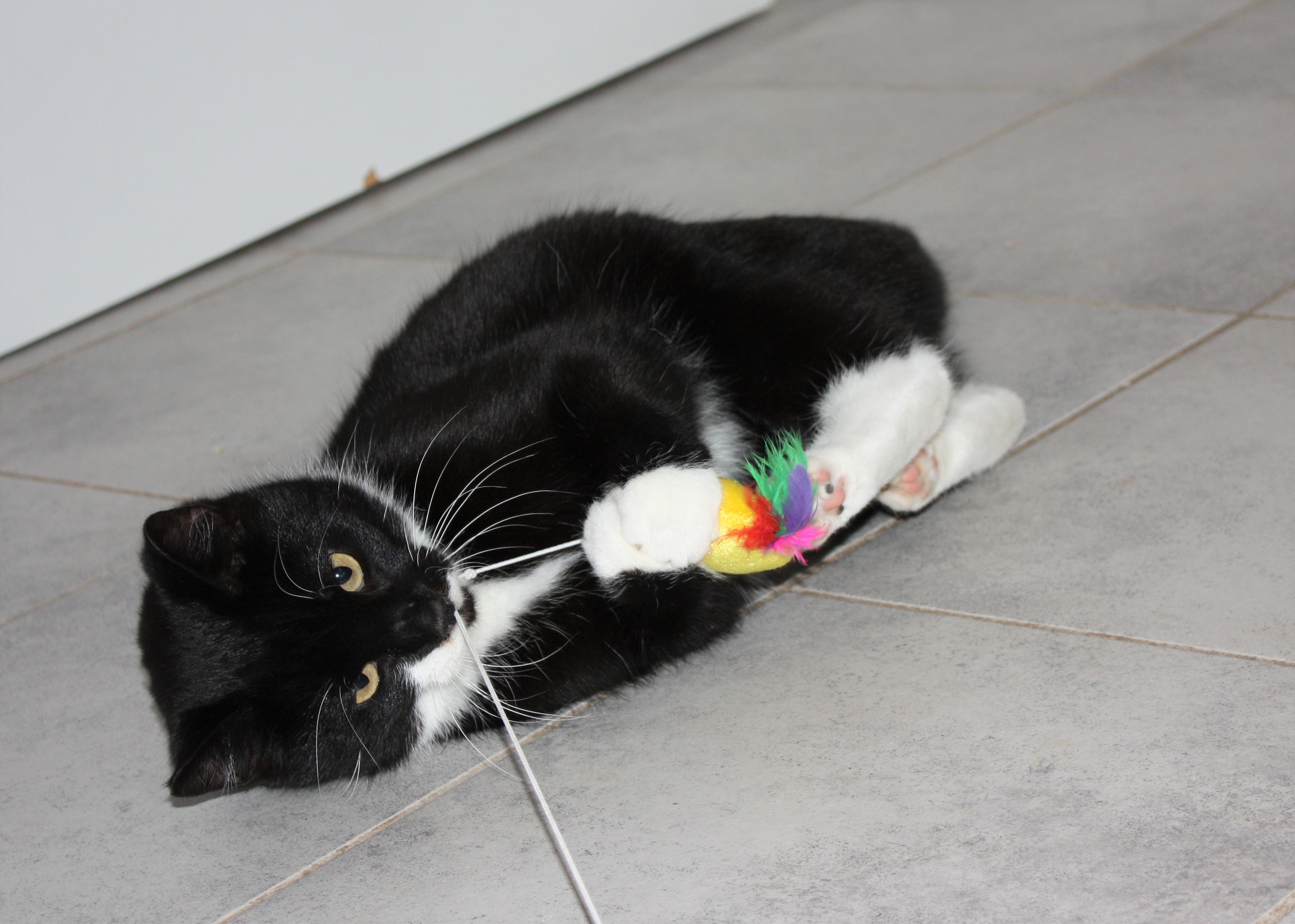 Die beiden Stubentiger haben chronischen Schnupfen – das stört sie aber überhaupt nicht, ganz im Gegenteil: Henry und Muffin sind sehr quirlig und verspielt. Ob nun mit einem Ball, Intelligenzspielzeug oder eine Spielangel macht keinen Unterschied. Da wird gejagt, über den Boden gerollt und getobt. In kurzen Spielpausen putzt man sich erstmal gegenseitig oder trägt ein kleines Kämpfchen aus.
