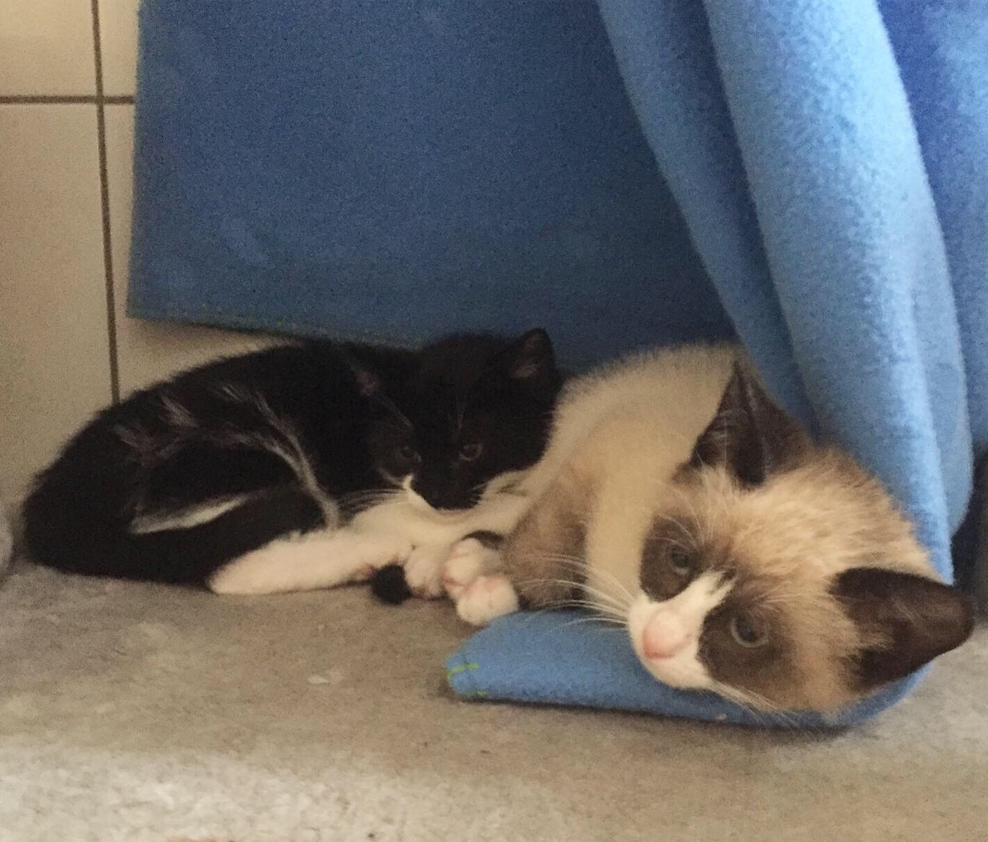 Ihr beiden kleinen Racker, macht es gut und genießt Euer Leben! Jetzt könnt ihr nach Herzenslust zusammen toben, könnt mit Euren Menschen spielen und Euch beschmusen lassen. Wenn Ihr dann vom Erlebten ordentlich müde seid, habt Ihr viele kleine Verstecke und Kuschelplätze, um Euch dort auszuruhen. Wir wünschen Euch dazu alles Gute, und lasst doch mal was von Euch hören oder lesen! Wir freuen uns darauf!