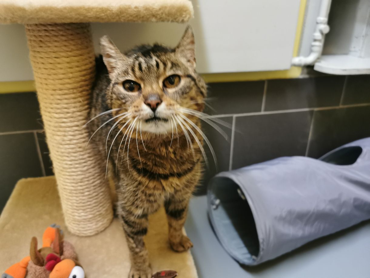 Zum Glück wurde ihr Kampfgeist aktiviert. Die liebenswerte getigerte Samtpfote schlich sich ganz leise in alle Herzen. Zaghaft und vorsichtig nahm sie die angebotenen Streicheleinheiten an, aber nicht nur diese, sondern auch das ein oder andere Leckerchen. Darüber haben wir uns sehr gefreut, denn das hieß für uns, Hope gibt nicht auf.