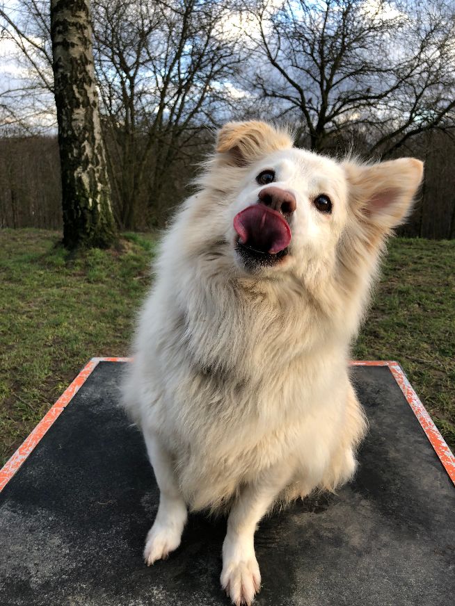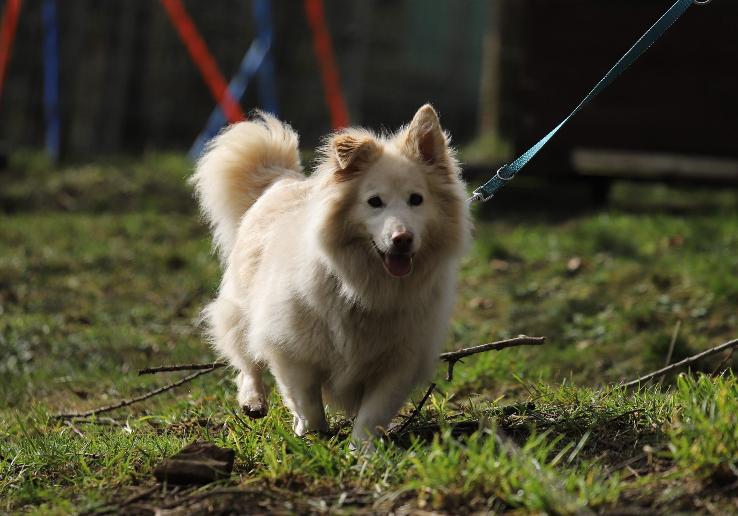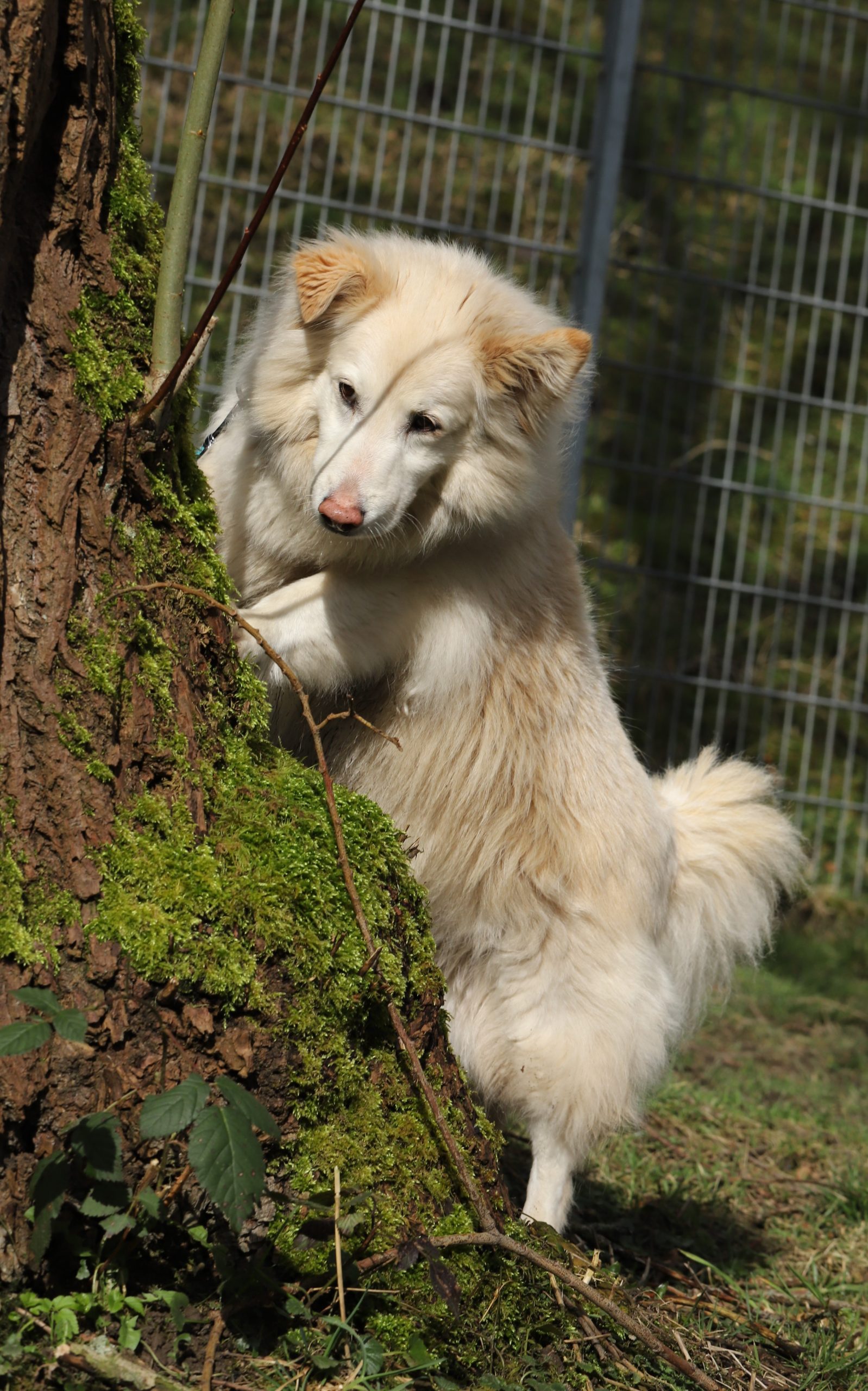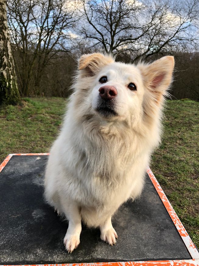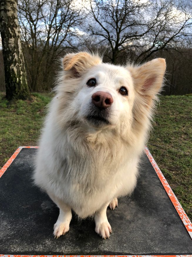 allen Hunden verträglich, möchte aber nicht von fremden Menschen angefasst werden! „Seinem Menschen“ schließt er sich spitztypisch eng an! Die Gassigänger im