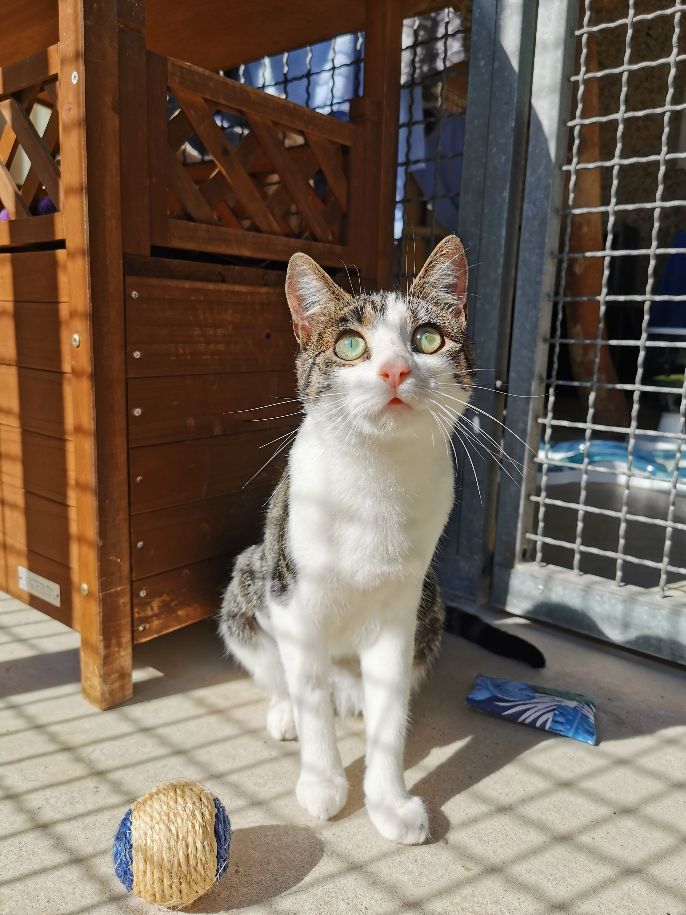 Altersentsprechend ist die getigert-weiße Fellnase verspielt und aktiv. Und dabei gleichzeitig liebebedürftig und verschmust. Kurz … Ein wahrer Sonnenschein.