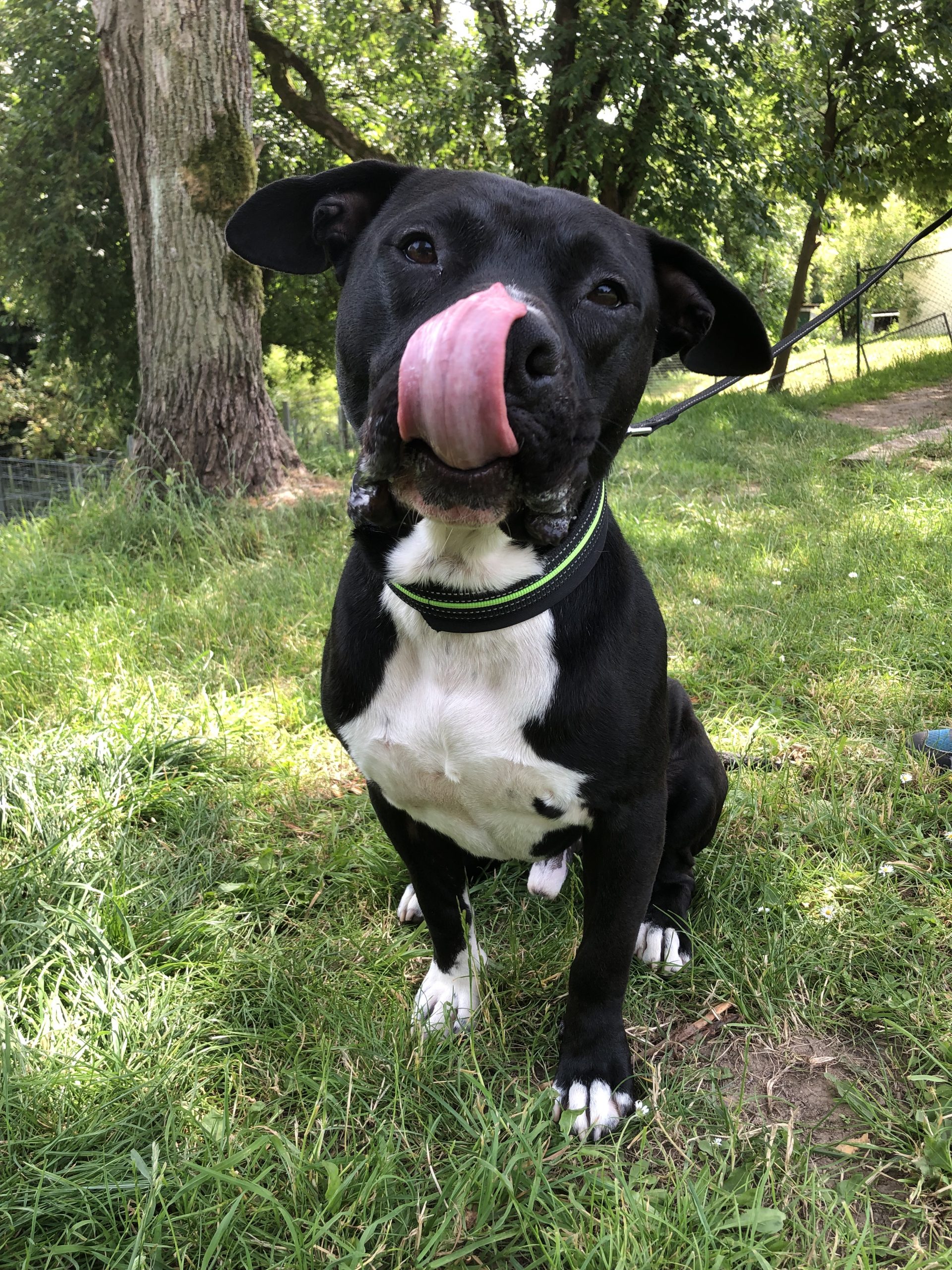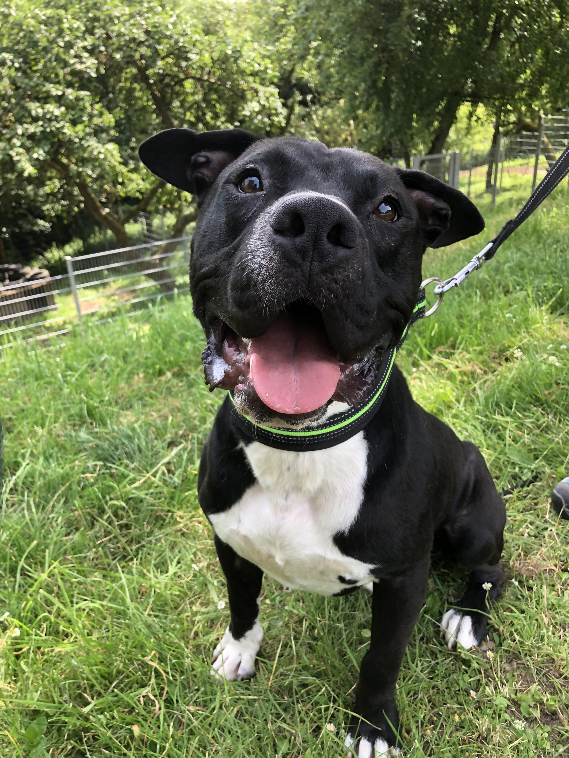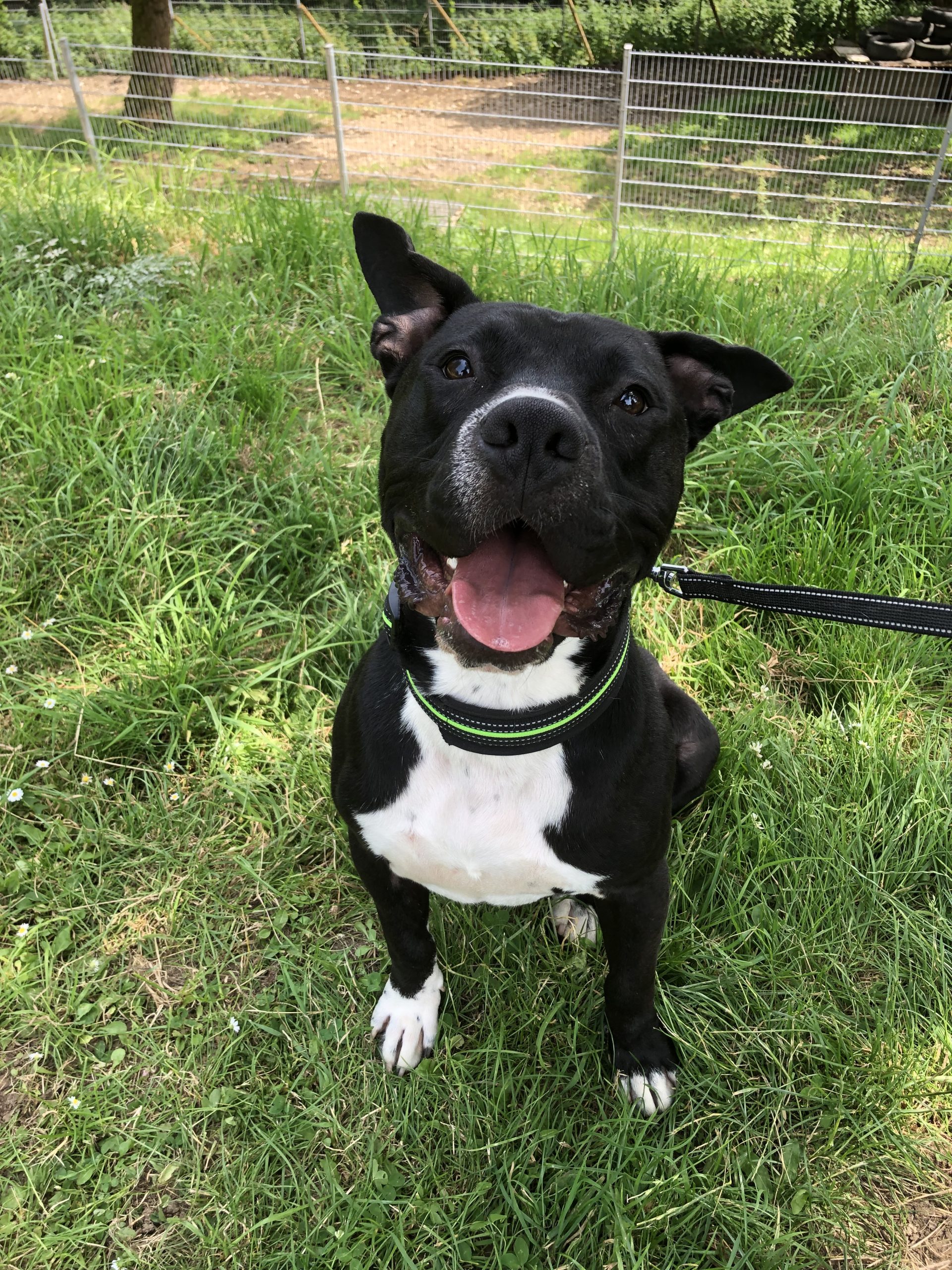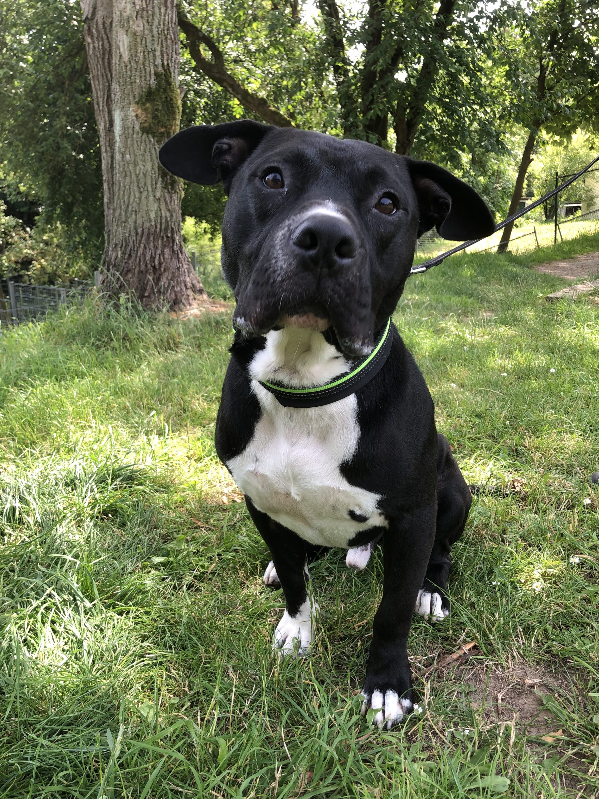Da Kijo ein Staffordshire-Mix ist, sind an seine Haltung einige Auflagen geknüpft.