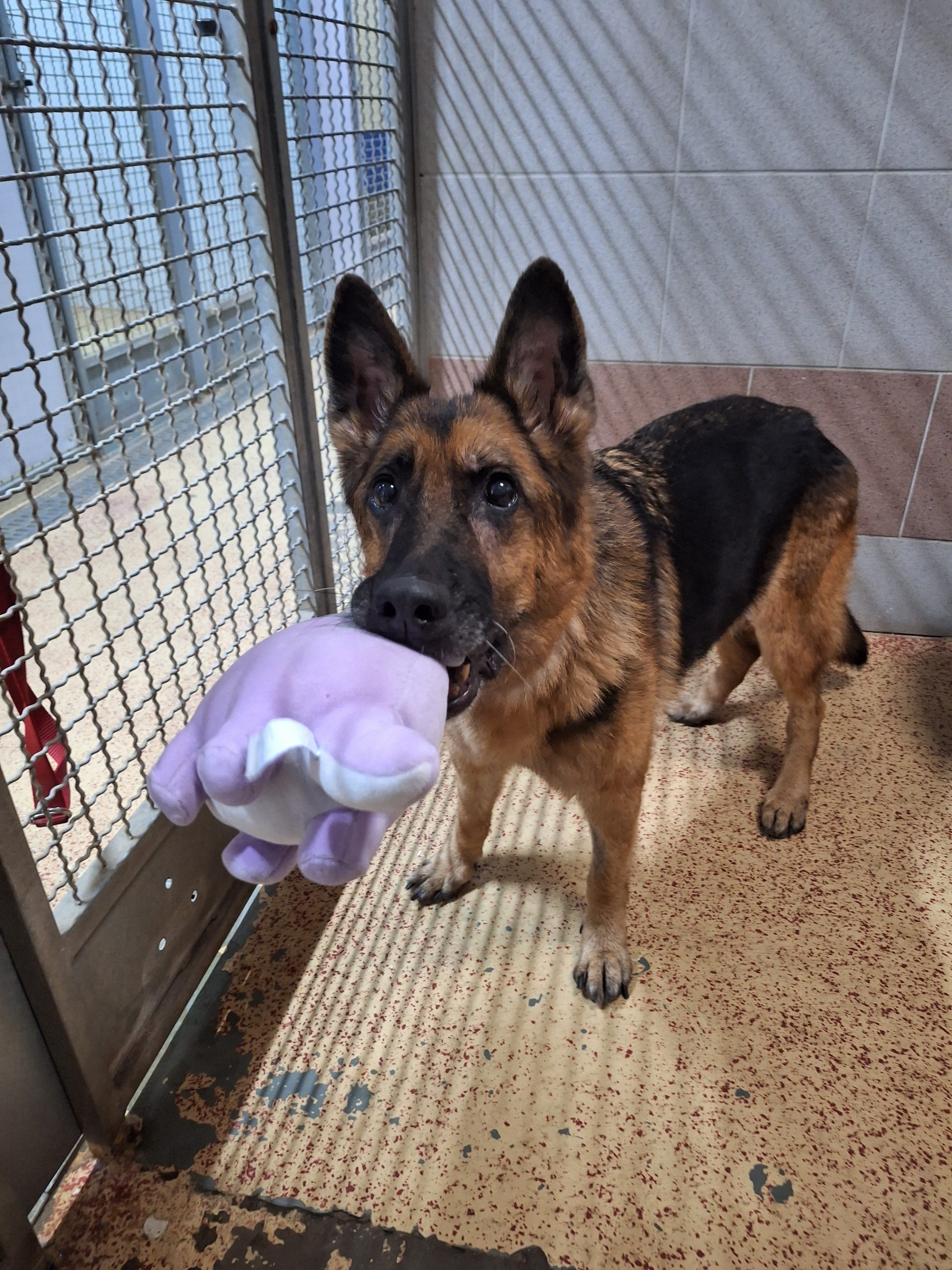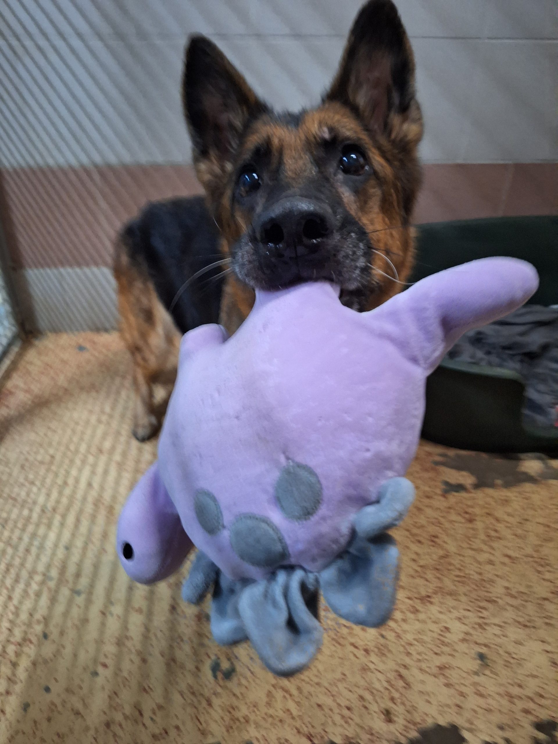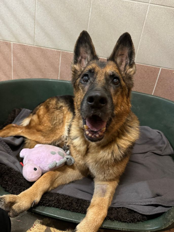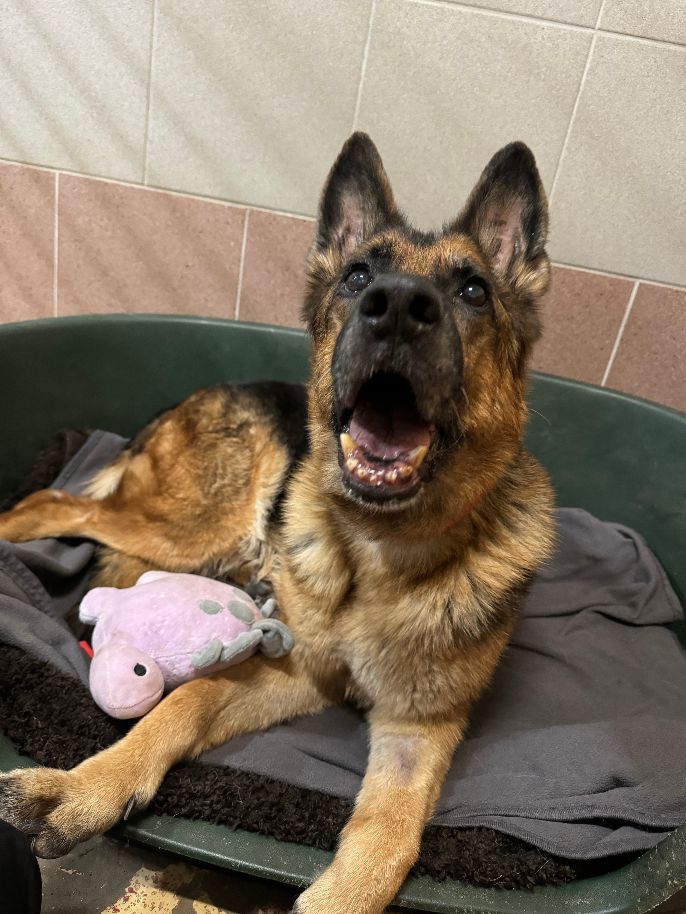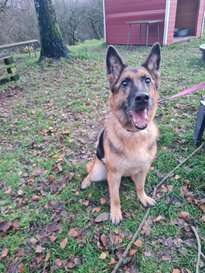 An der Leine und bei Besuch zeigt sich die Schäferhündin leider schnell gestresst und bellfreudig, aber nie aggressiv.