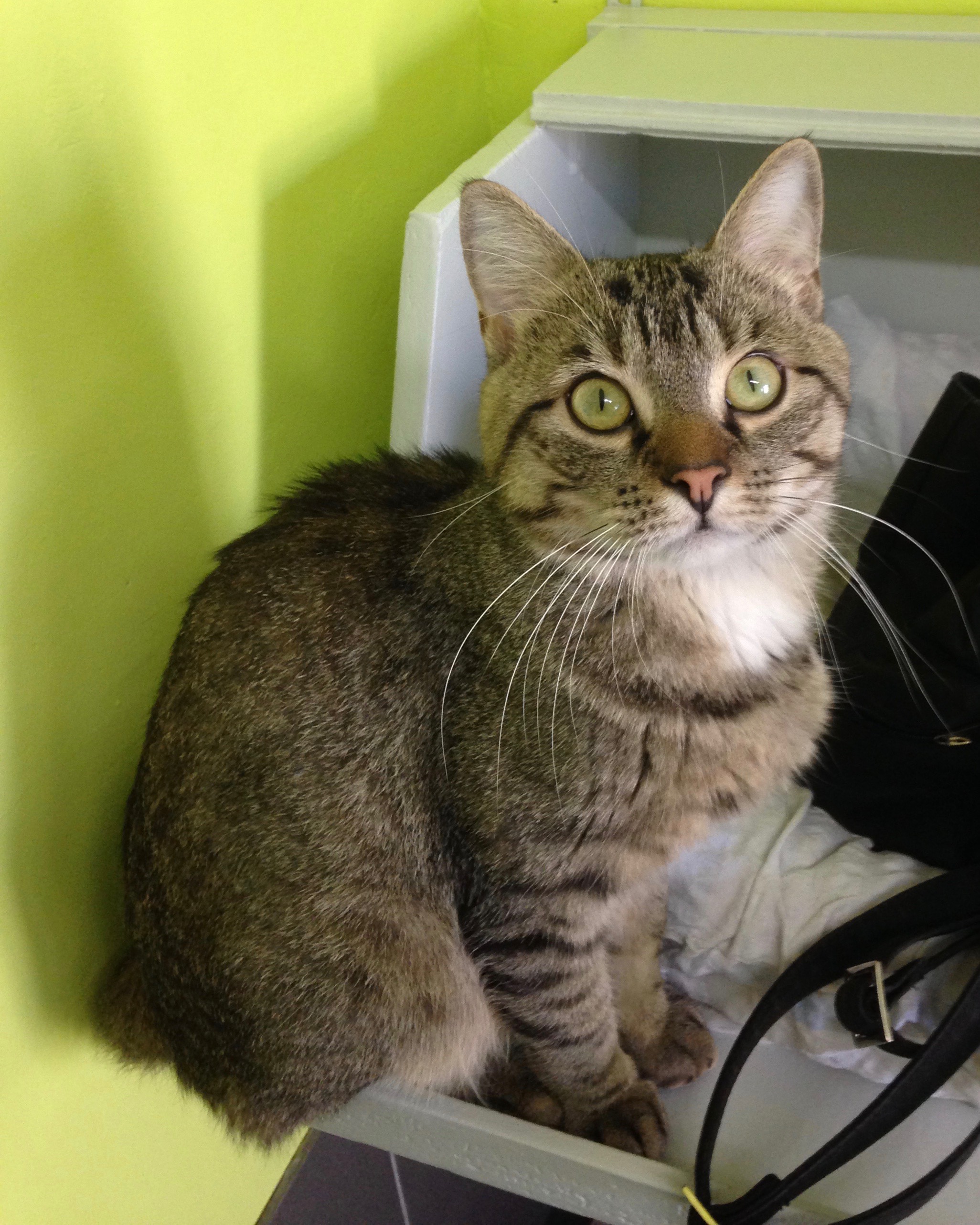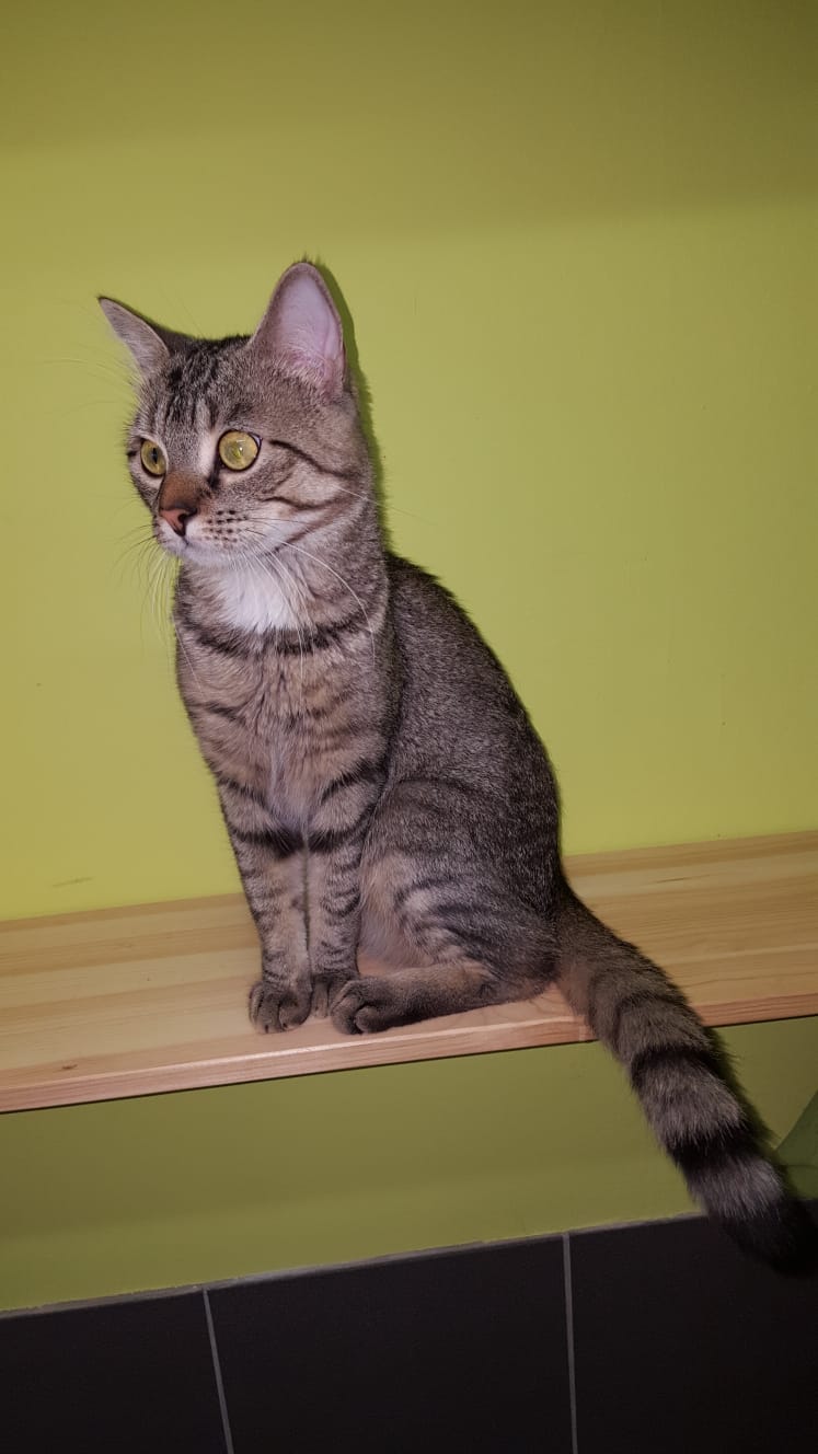 Der hübsche graugetigerte Kater mit dem weißen Latz, der ursprünglich als Fundtier zu uns kam, ist schon in sein eigenes Zuhause (weiter)gezogen.