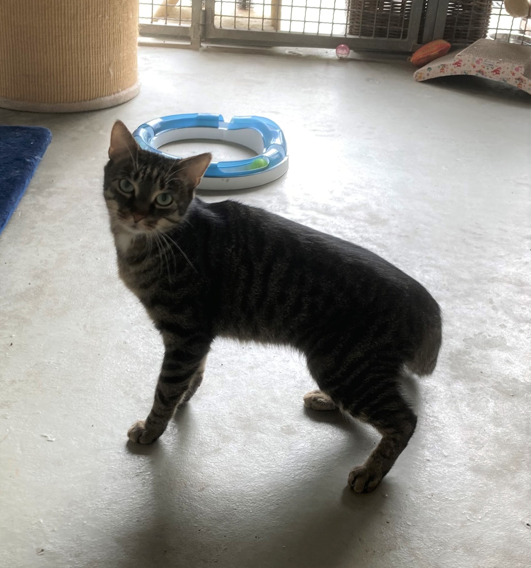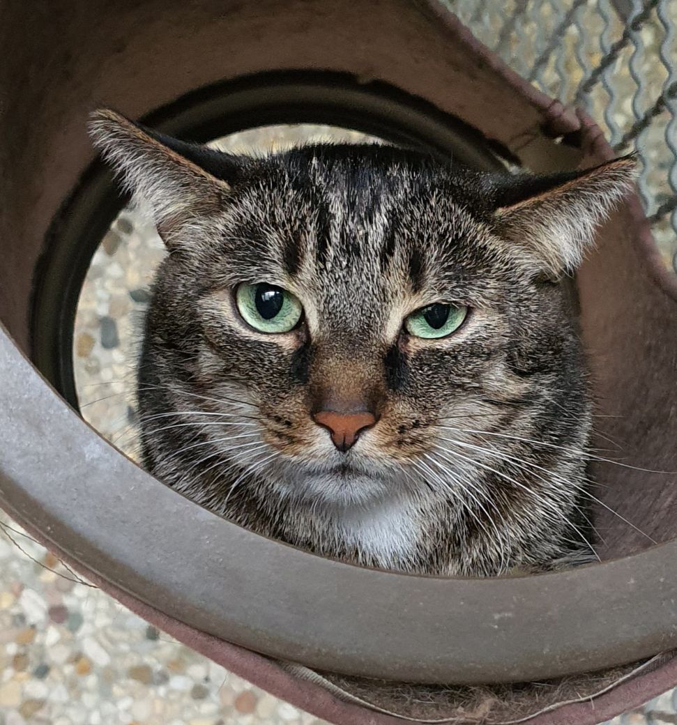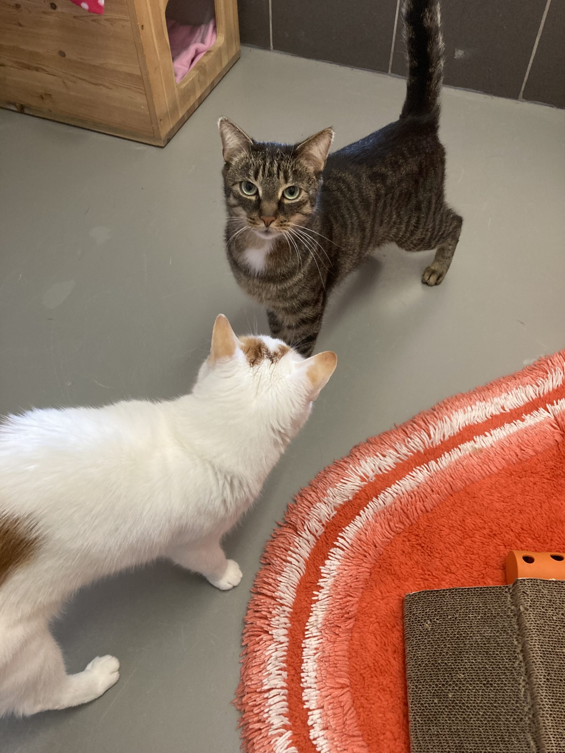 Zunächst waren die beiden Grautiger noch deutlich überfordert mit der Situation und konnten sich nur schwer im Tierheimalltag eingewöhnen. Sie versteckten sich vorsichtshalber erst einmal, wenn Menschen die Katzenstuben betraten und beobachteten das Geschehen lieber aus ihren Kuschelhöhlen heraus.