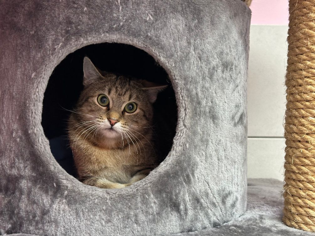 Lou ist etwas mutiger als ihre Schwester Leni und traut sich schon was. Die Neugierde der beiden jungen Katzendamen, kann man sich gut zur Eingewöhnung zu Nutze machen.