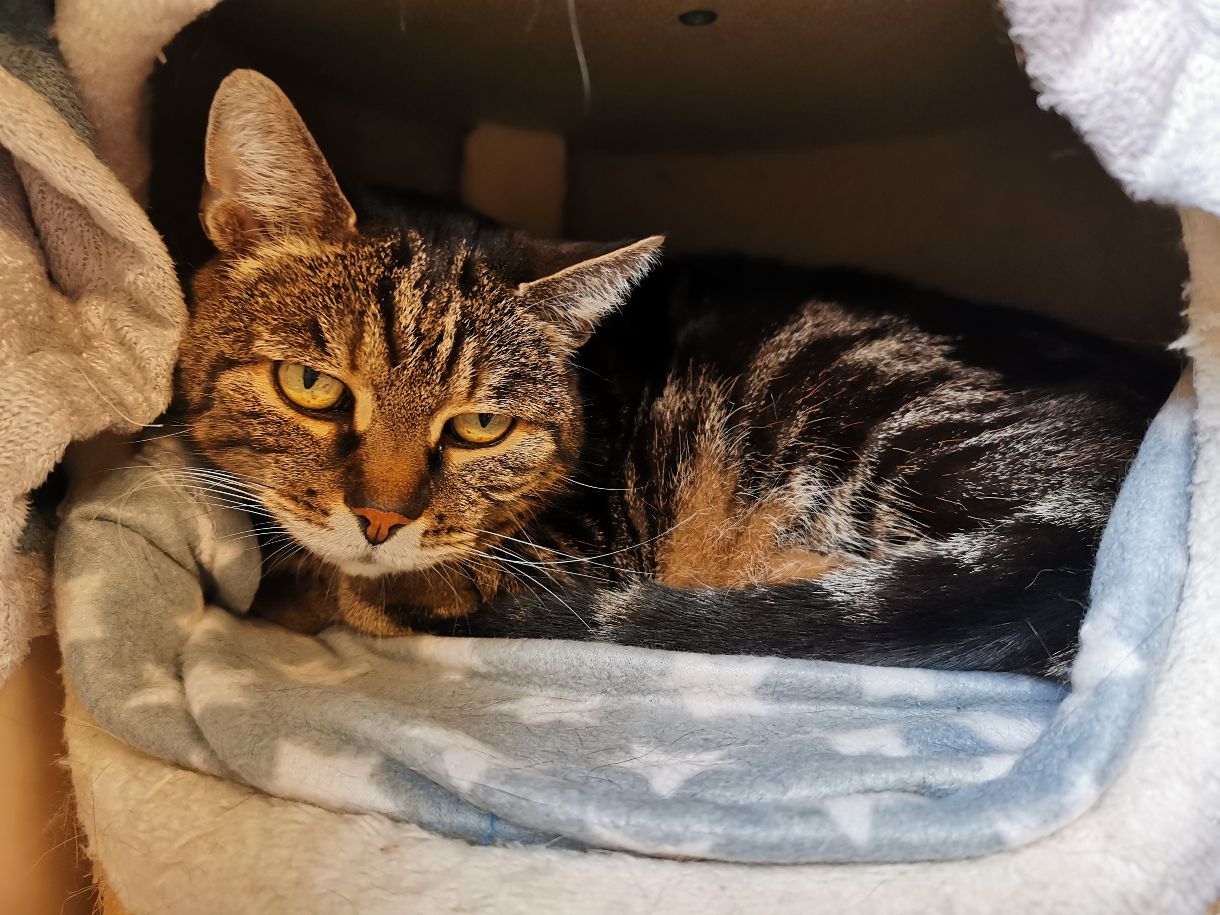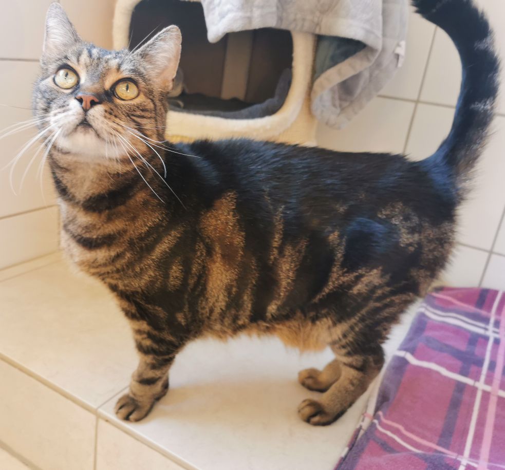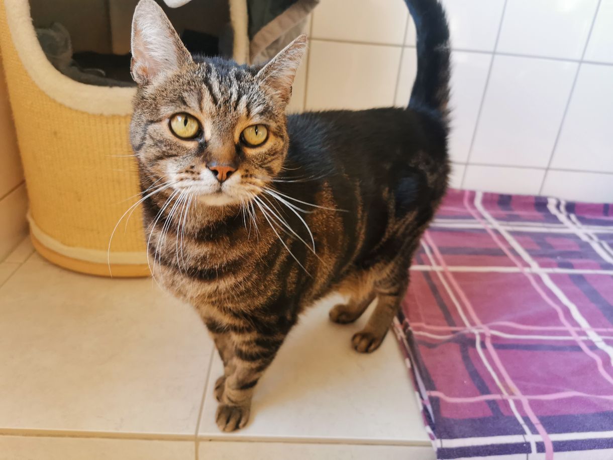 „Lümmel“, ein schöner, gestromter Kater, kam als Fundtier in unser Tierheim. Seinen Namen erhielt der tabbyfarbene Haustiger, weil er mit seinen Pflegerinnen zunächst nicht gerade zimperlich umging. Zum Glück war der Grund für die scheinbare Unfreundlichkeit des Katers aber rasch gefunden; er litt unter starken Schmerzen und es ging ihm deshalb natürlich nicht gut. Nach seiner Genesung nahm das Verhalten des hübschen Samtohres aber eine 180°-Wendung und der kleine Schelm entpuppte sich als der liebste und ausdauerndste Schmusekater überhaupt.