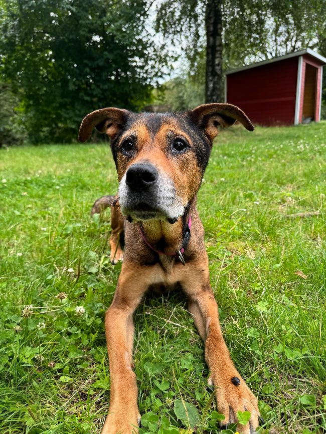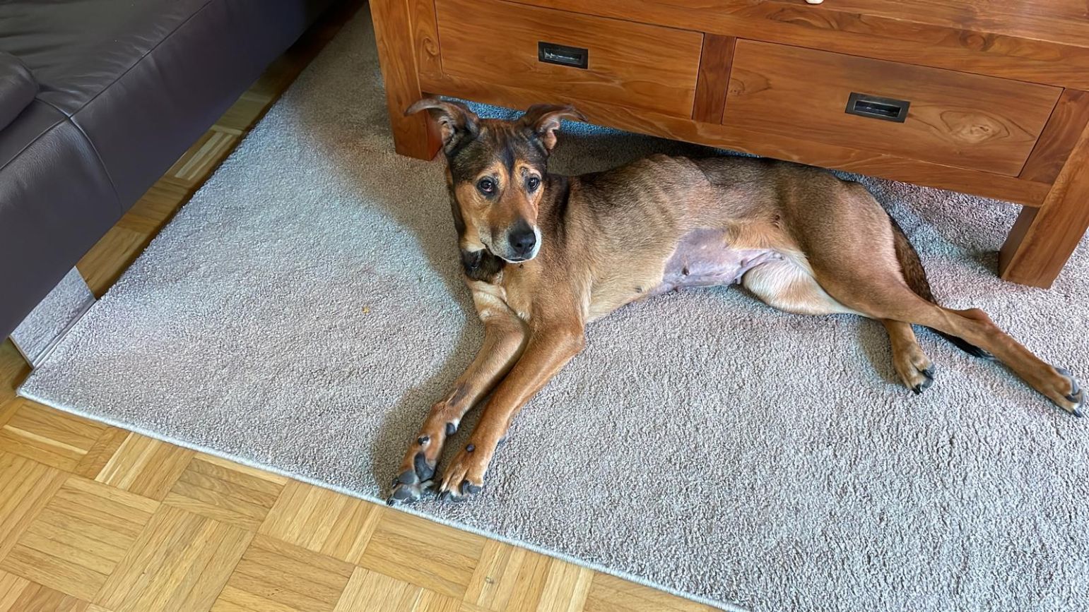 Luna ist eine ca. 13 Jahre alte, betagte Schäferhund-Mix Dame, die Anfang August als Pfleghund des Tierheimes Velbert zu uns gekommen ist.