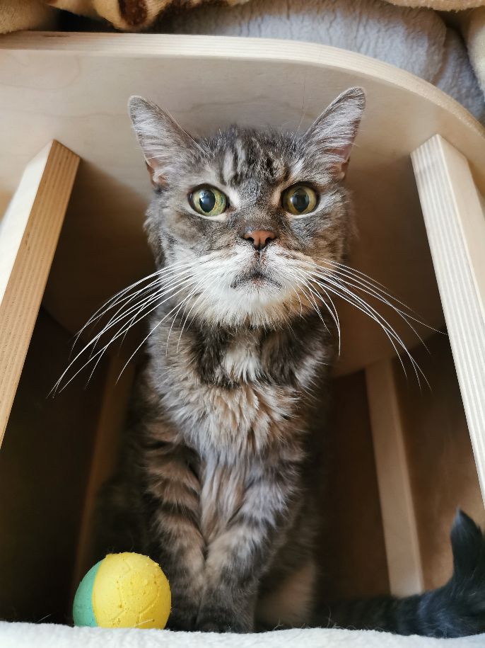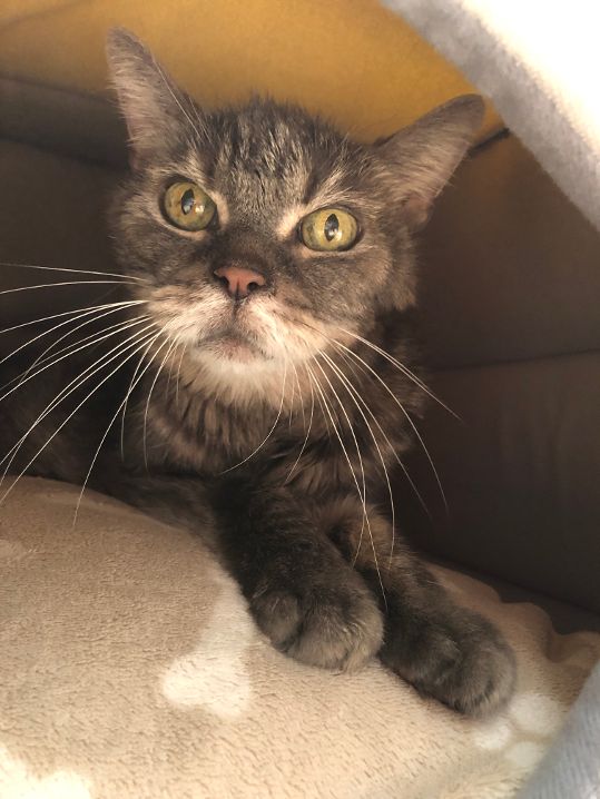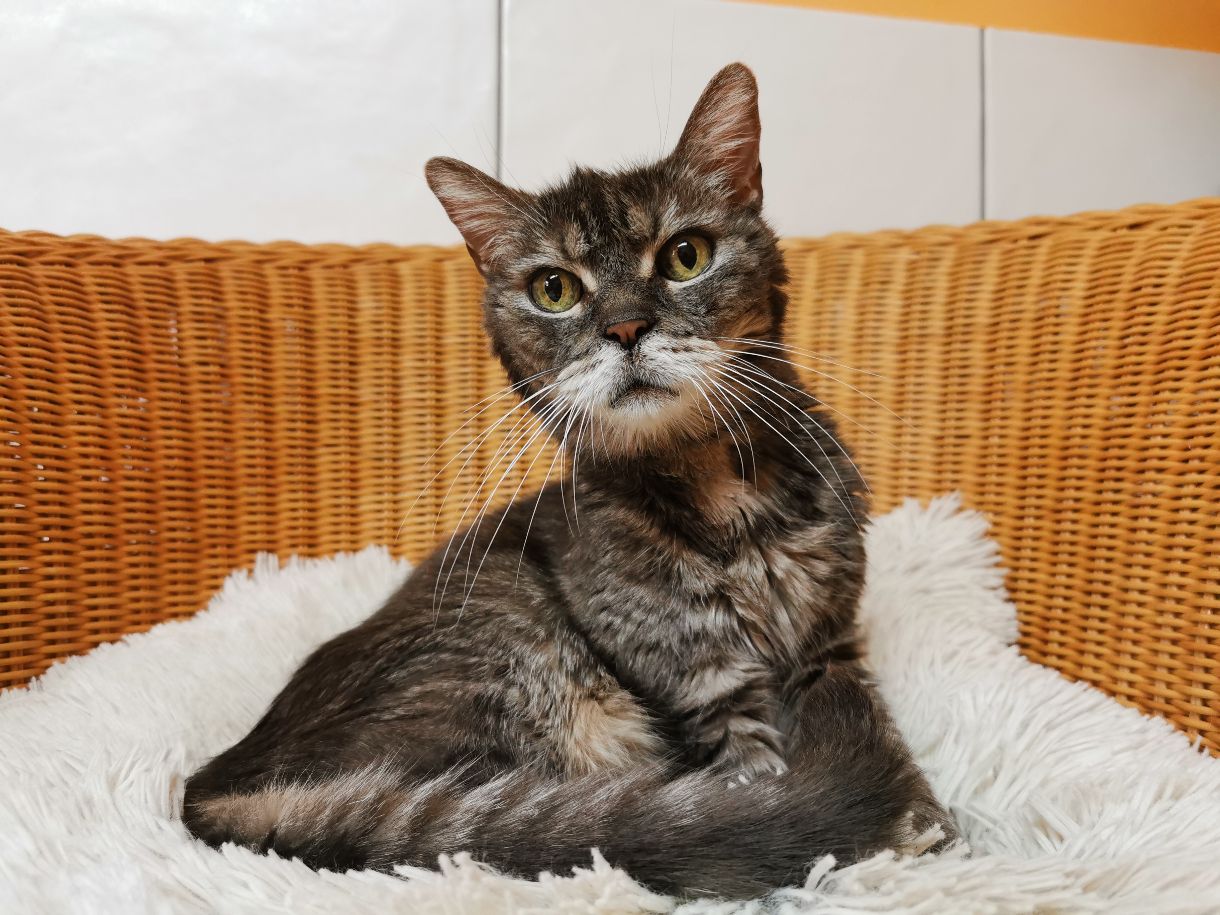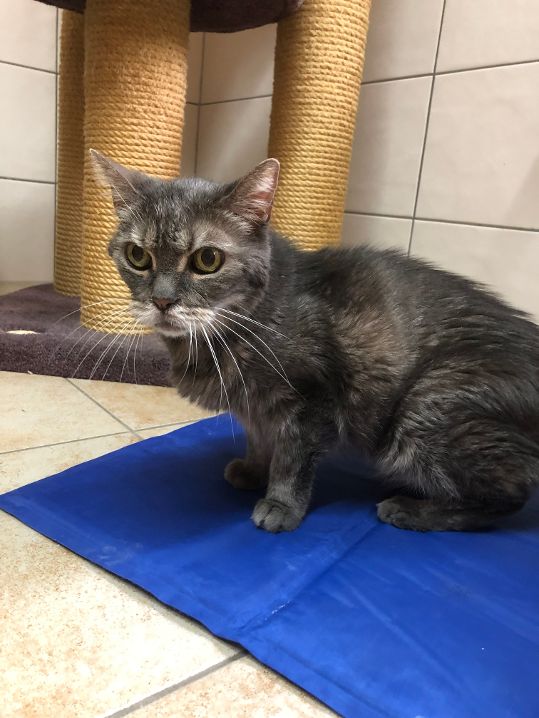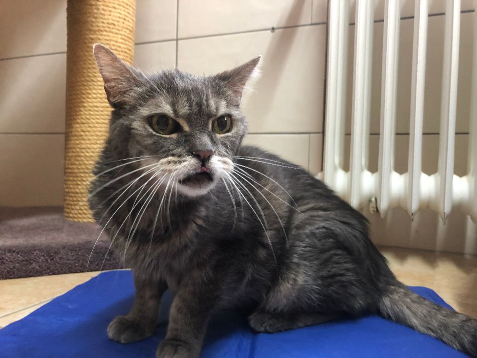Die Seniorin, die als verschmust und menschenbezogen beschrieben worden war, musste nun erst einmal ihre ungewohnte Umgebung verarbeiten; und zu allem Unglück stellten sich bei tierärztlichen Untersuchungen dann auch noch gesundheitliche Probleme heraus. Daher war es kein Wunder, dass sich die grau-getigerte Katzenomi zunächst erst einmal zurückzog und ein bisschen „grummelig“ wirkte. Als Luna aber feststellte, dass hier viele freundliche Menschen sie umsorgten, wurde sie sehr zutraulich und ließ sich gerne bekuscheln und mit Leckerchen verwöhnen.