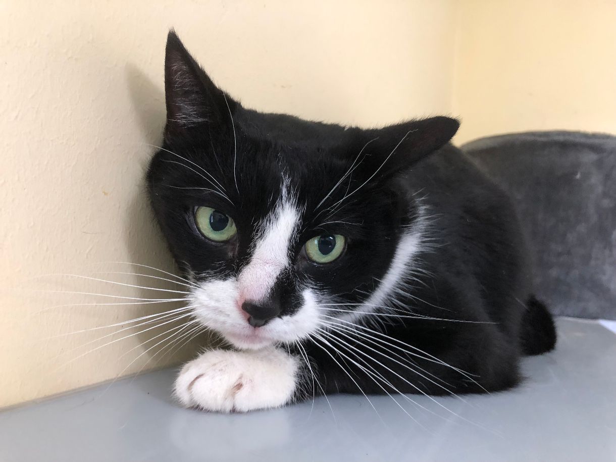 Die liebe schwarz-weiße Mäusi wurde abgegeben, weil sie sich im bisherigen Zuhause nicht mit dem vorhandenen Kater verstand.