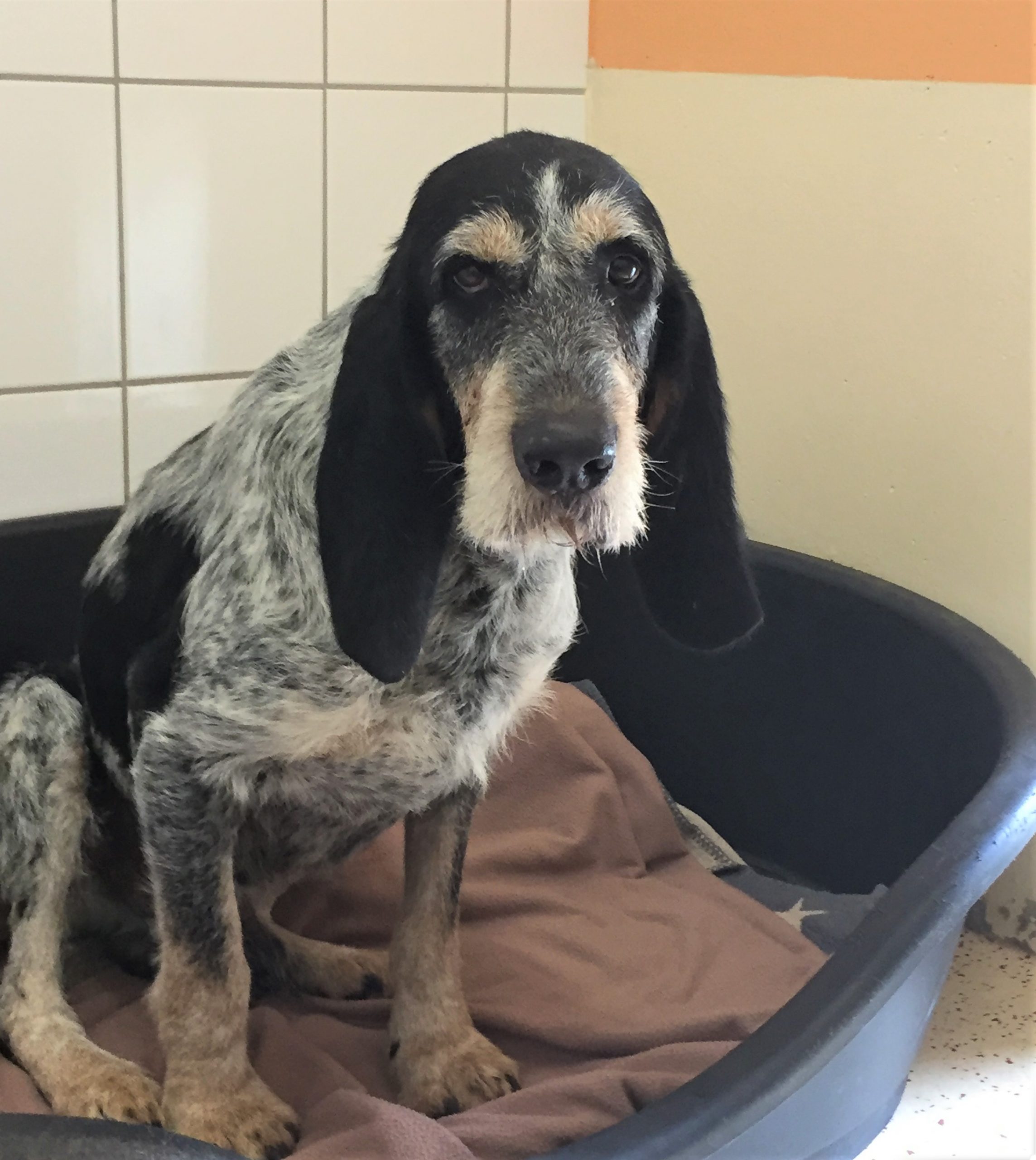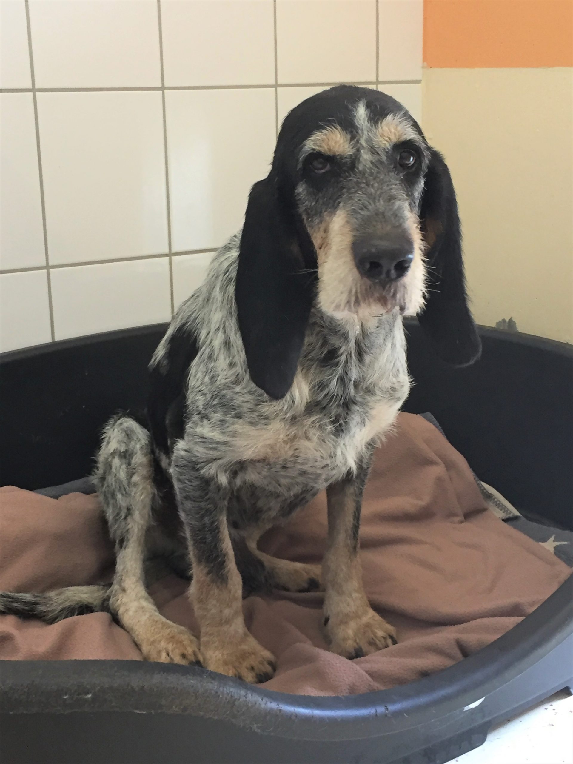 Unseren lieben Mako, ein Bleu de Gascogne, übernahmen wir von einem befreundeten Verein! Bei Fremden,
