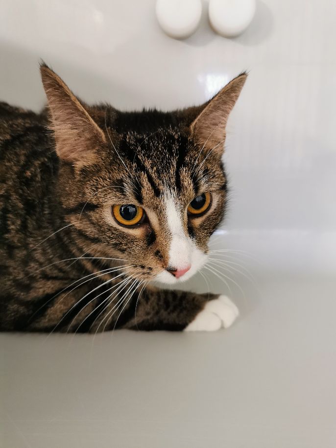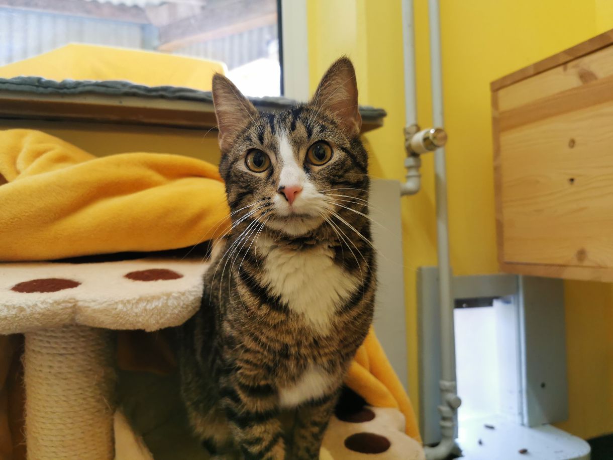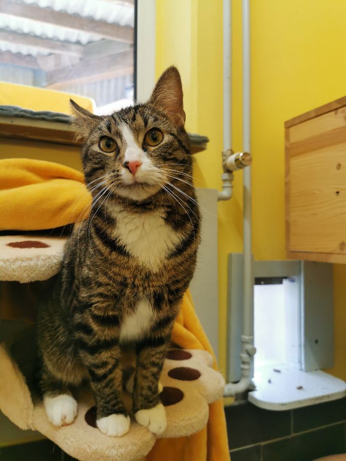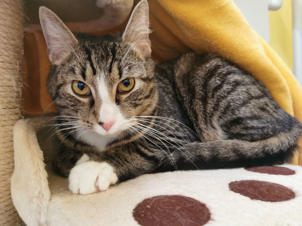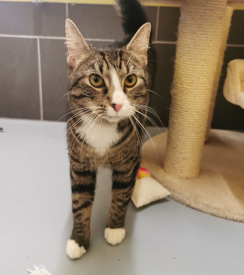 Der junge zierliche Kater Max war aufgrund einer Allergie des Besitzers schweren Herzens bei uns im Tierheim abgeben worden.