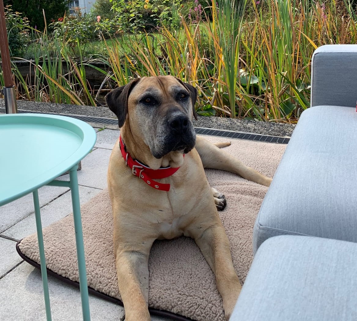 Eine Vermittlung schien schwierig zu sein, aber Mayla hatte riesiges Glück und durfte zu einer Frau aus Velbert in ein wunderschönes Zuhause ziehen, wo sie einen großen Garten hat und eine Molosser erfahrene Halterin!