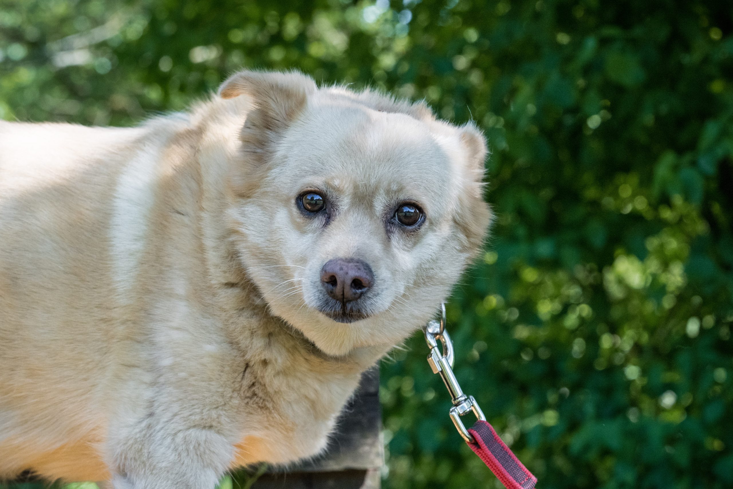Mena kam mit zwei weiteren Hunden aus einem Messiehaushalt zu uns, da ihre Besitzerin verstorben ist. Sie scheint in ihrem Leben nicht sonderlich viel kennengelernt zu haben und zeigt sich noch etwas unsicher.