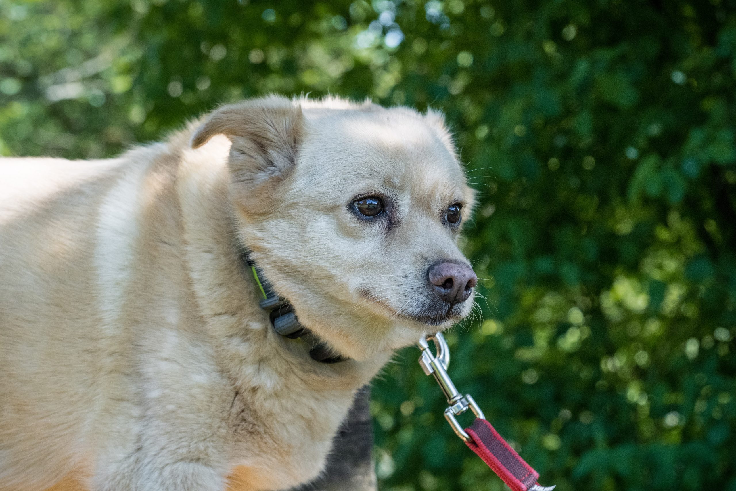 Da Mena mit starkem Übergewicht bei uns ankam, befindet sich aktuell noch auf Diät. Dies sollte in ihrem neuen Zuhause weiter fortgeführt werden, damit es nicht auf Dauer ihre Gelenke belastet