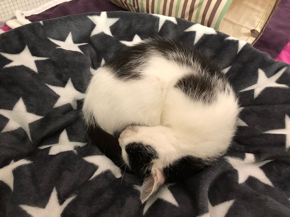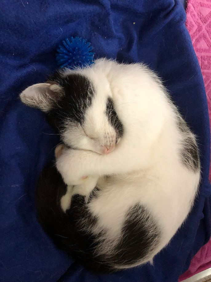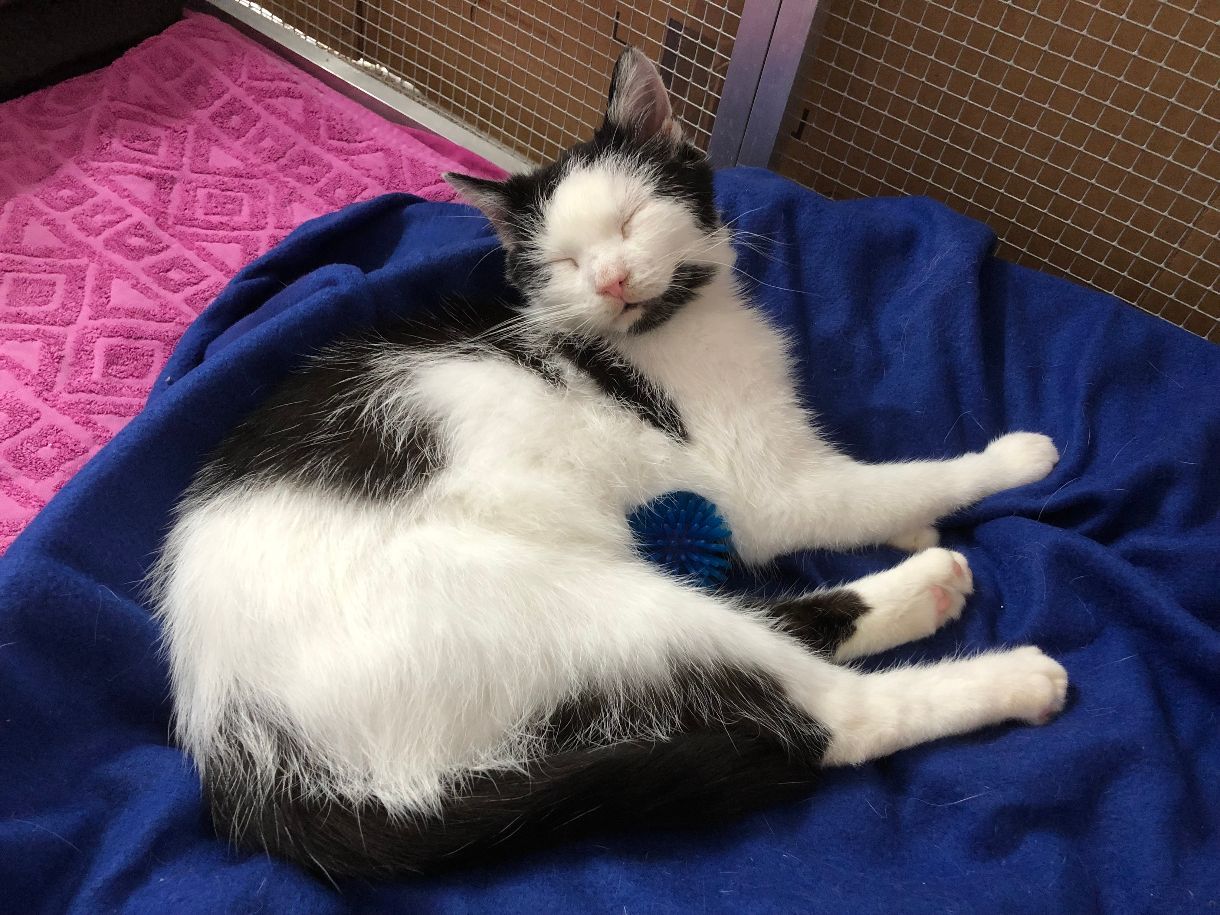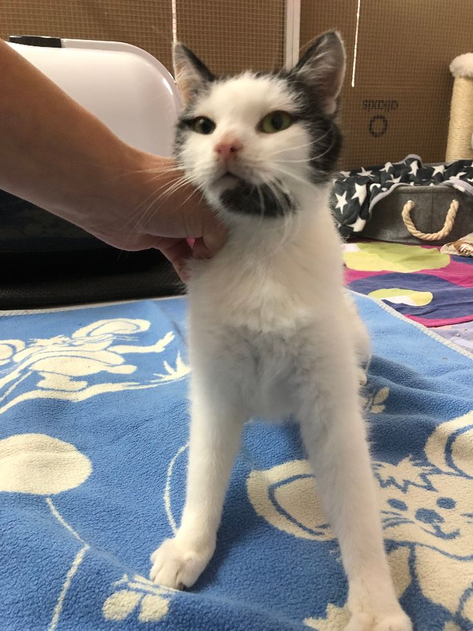 Merida war als Fundkatze zu uns gekommen und wahrscheinlich ausgesetzt worden. Die zierliche Katze hat starke neurologische Beeinträchtigungen, die vermutlich durch eine Toxoplasmose-Infektion entstanden sind.