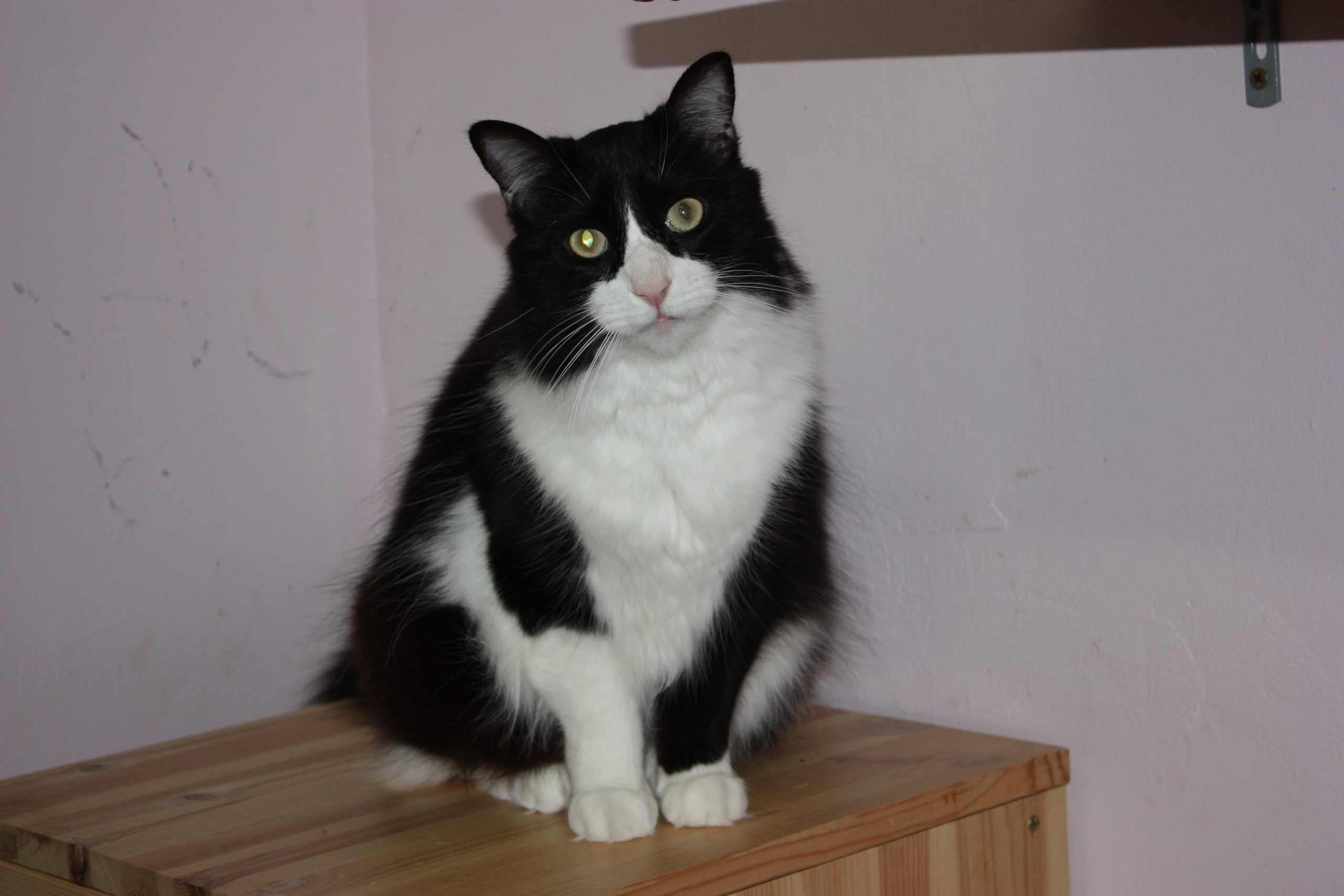 Mimi, eine schwarz-weiße Langhaar-Mix Katze mit unglaublichen Augen, ist eine herbe Schönheit mit „ein paar Pfund zu viel auf den Rippen“ und dabei eine ganz verschmuste Samtpfote. In den Katzenstuben kam sie freundlich aber unaufdringlich auf Interessenten zu, lud sie zu Streicheleinheiten ein und schien einfach rundum zufrieden, wenn ihr liebevolle Aufmerksamkeit geschenkt wurde.