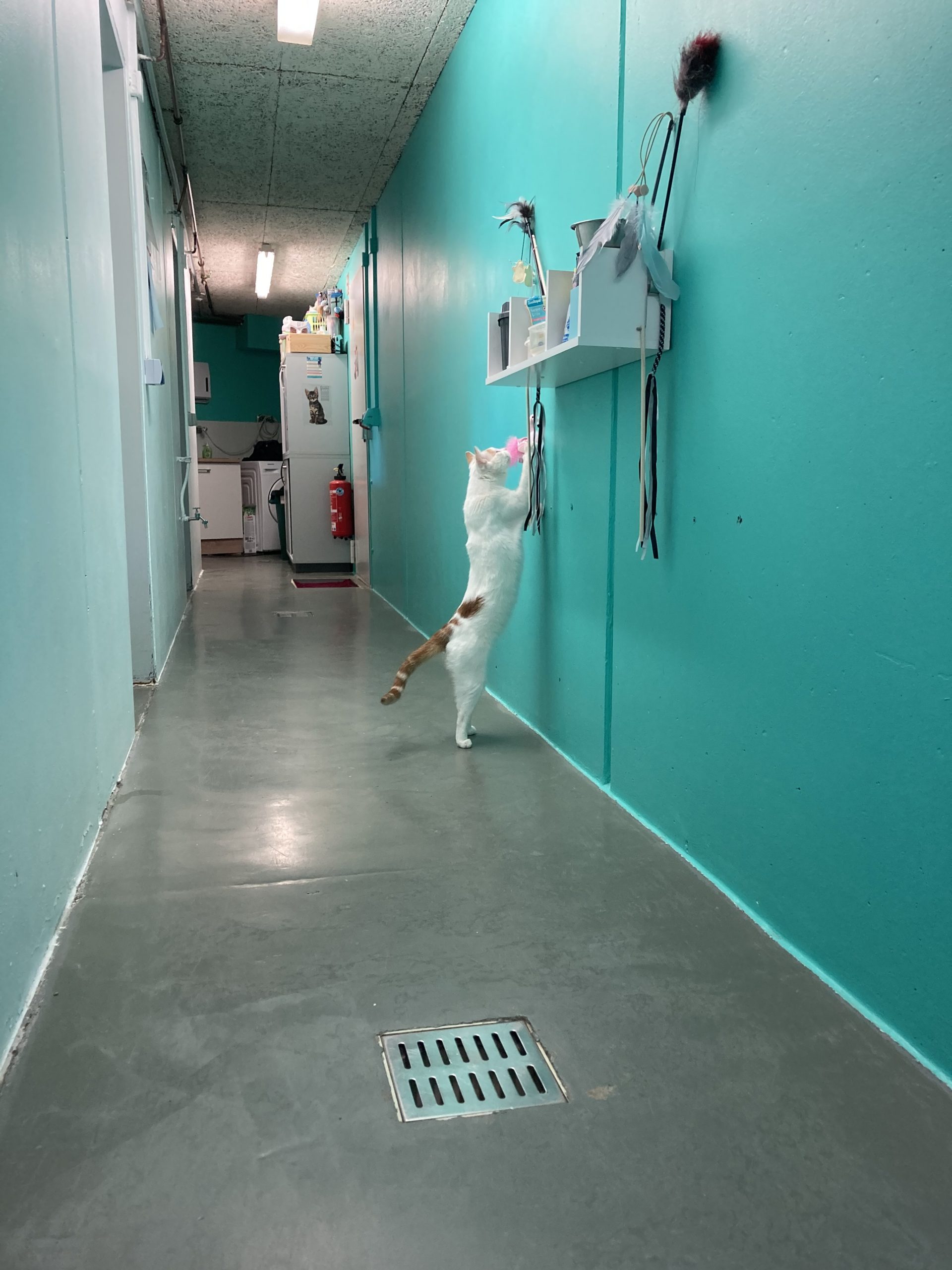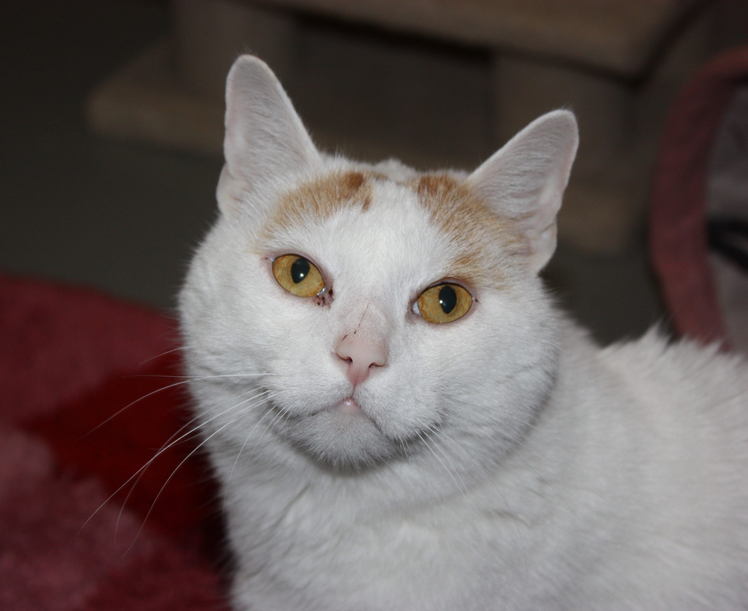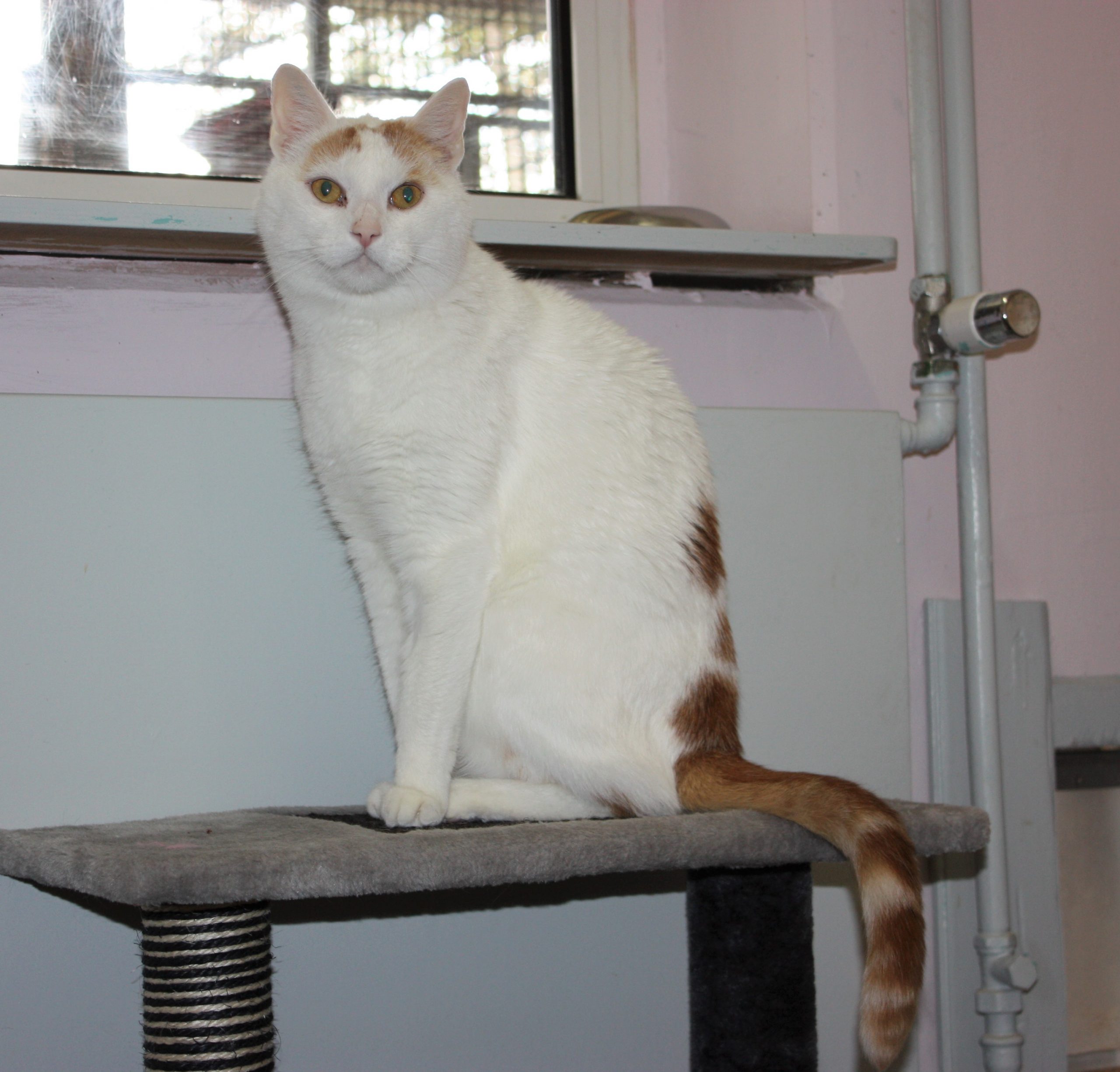 Kater Mojo kam von einem anderen Tierschutzverein zu uns – er hatte auf der Pflegestelle, auf der er lebte, mehrfach Krallen und Zähne gezeigt. Im Tierheim stellten wir bald den Grund für dieses Verhalten fest: Mojo hatte starke Schmerzen, die von einer weit fortgeschrittenen Arthrose herrührten, und schon der Versuch, ihn an diesen Stellen zu berühren, verursachte ihm großen Stress. Dies und die bloße Anwesenheit der anderen Stubentiger setzten ihm derart zu, dass er darauf nur mit Angriff reagieren konnte. Als das erkannt war, bekam der schöne weiß-rot-getigerte Kater (vorübergehend) eine Katzenstube für sich allein und wurde zudem von unserer Tierärztin auf eine geeignete Arthrose-Schmerzmedikation eingestellt. Natürlich ließ sich der geplagte Kater mit den unergründlichen Augen immer noch nicht dort anfassen, wo er Schmerzen verspürte, aber Mojo kam endlich zur Ruhe, konnte sogar bald menschliche Zuwendung genießen und zeigte sich bei ihm besonders vertrauten Personen richtiggehend lieb.