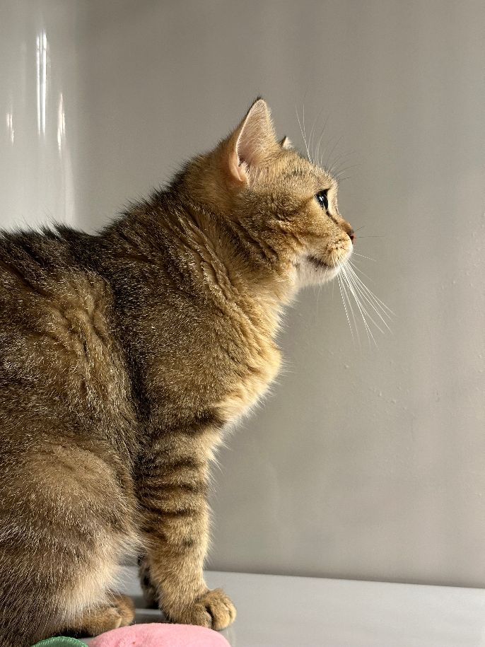 Moon zeigt sich als sehr ruhige Katze, die sich gerne Plätze auf dem Boden sucht und dort schläft. Körbchen meidet sie, daher muss man es ihr anders gemütlich machen.