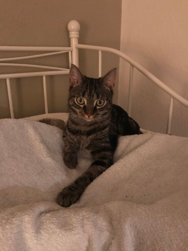 Die liebenswürdige und wissbegierige kleine Grautigerin wurde von Mitarbeiterinnen und Katzenkuschlerinnen liebevoll aufgepäppelt und verwöhnt und es ging ihr von Tag zu Tag besser. Besonders eine der ehrenamtlich tätigen Damen kümmerte sich sehr engagiert um Nala und bald wurde aus dem Sorgenfellchen ein kleiner Wildfang, der sich gerne die Zeit mit Spielen und Unsinn machen vertrieb. Nun war es auch an der Zeit, sich nach einem geeigneten schönen Zuhause umzusehen, was Nala gemeinsam mit „ihrer“ Katzenkuschlerin erfolgreich in die Pfote nahm.
