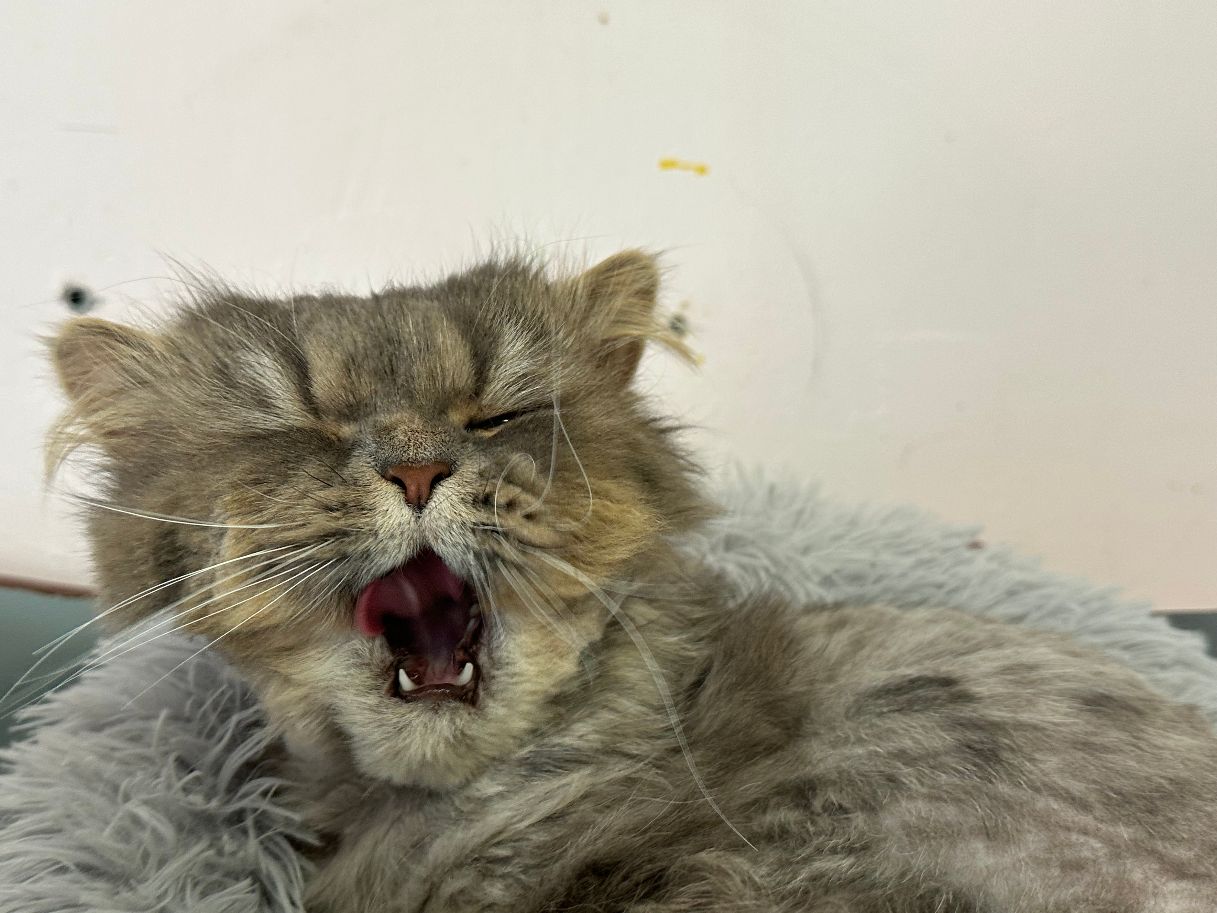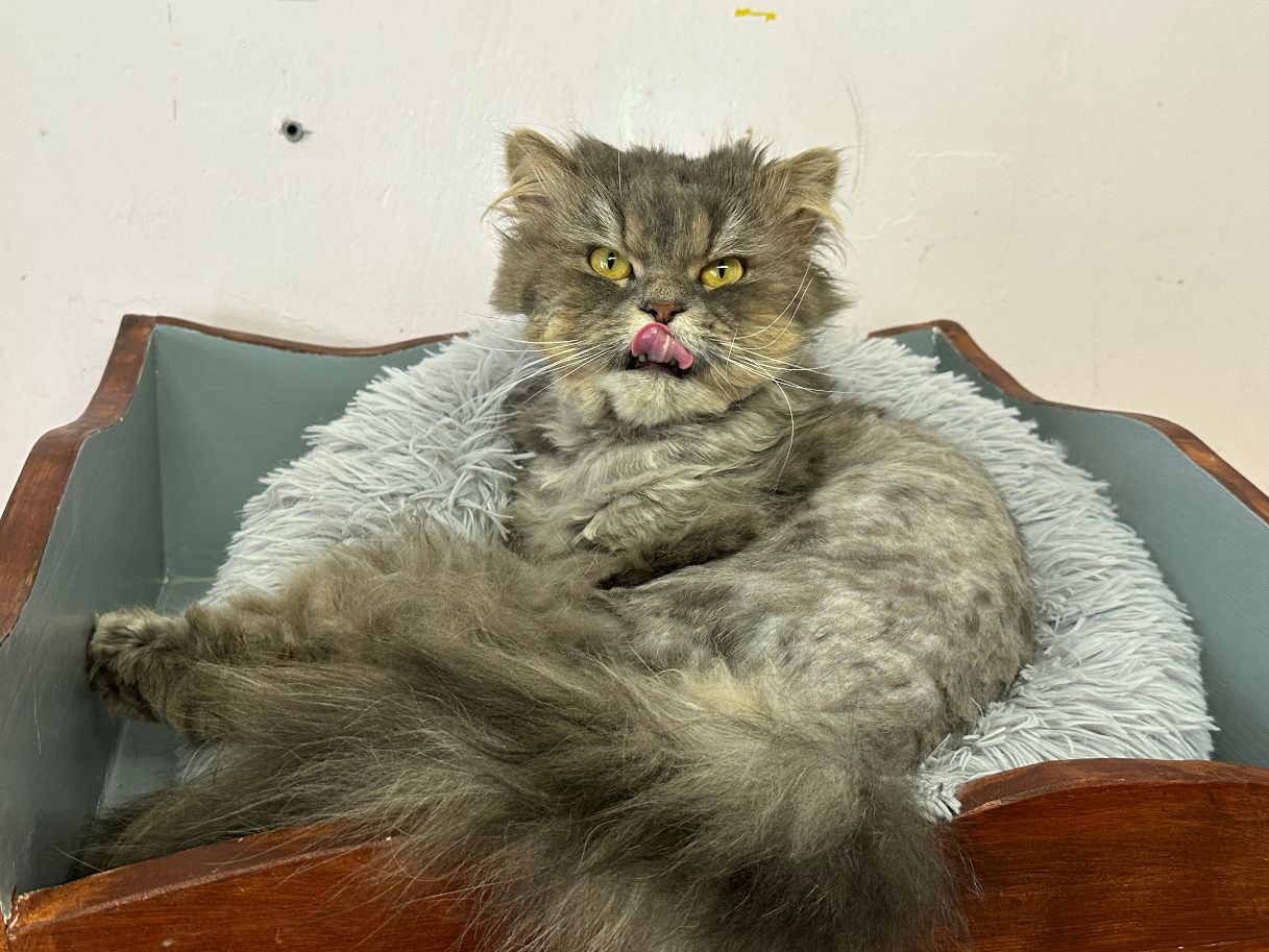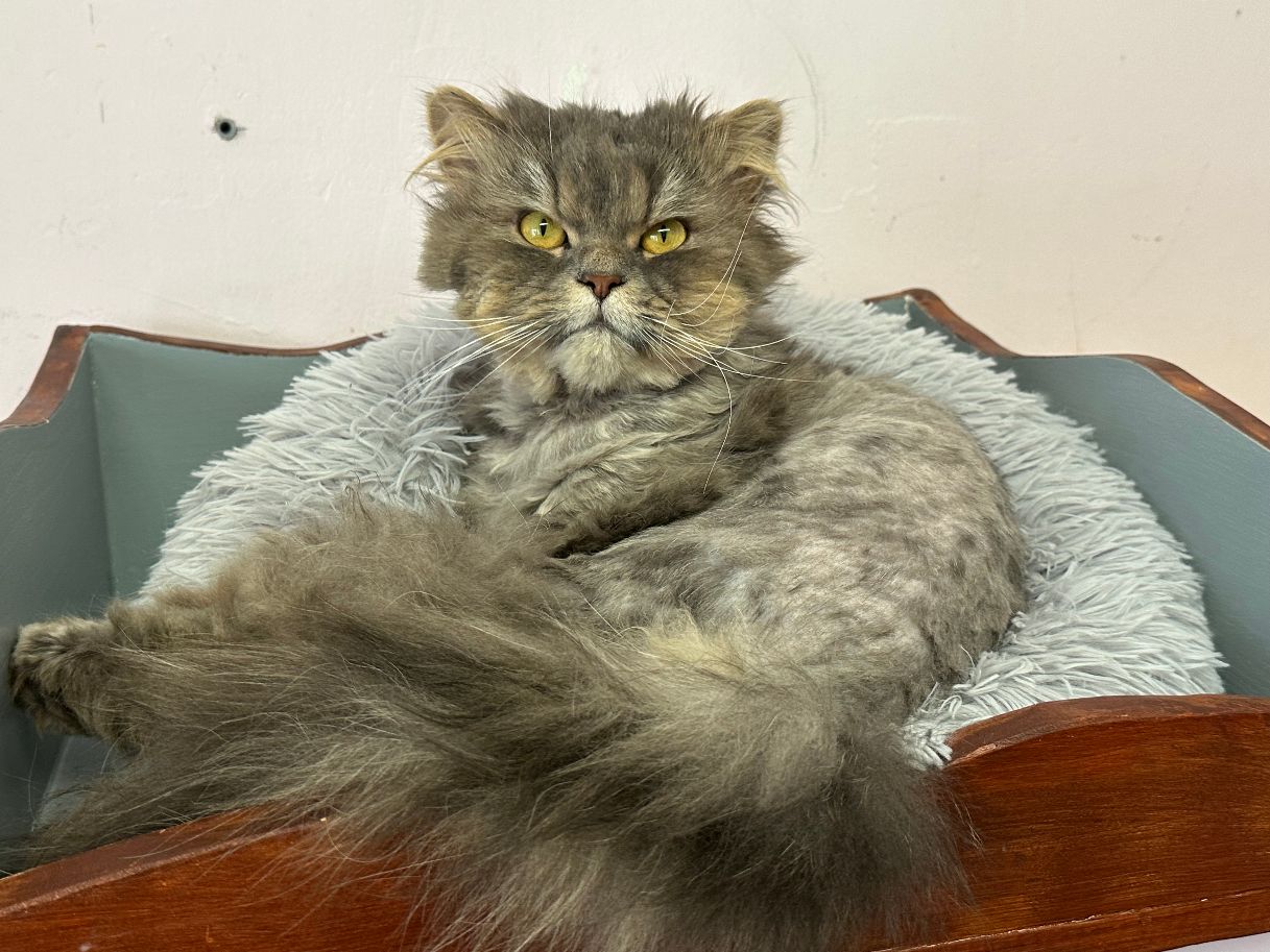Navajo kam als Fundkater zu uns. Der Pflegezustand des lieben Katers war erschreckend, daher wurde Navajo umgehend geschoren und von seinen extremen Filzplatten befreit.