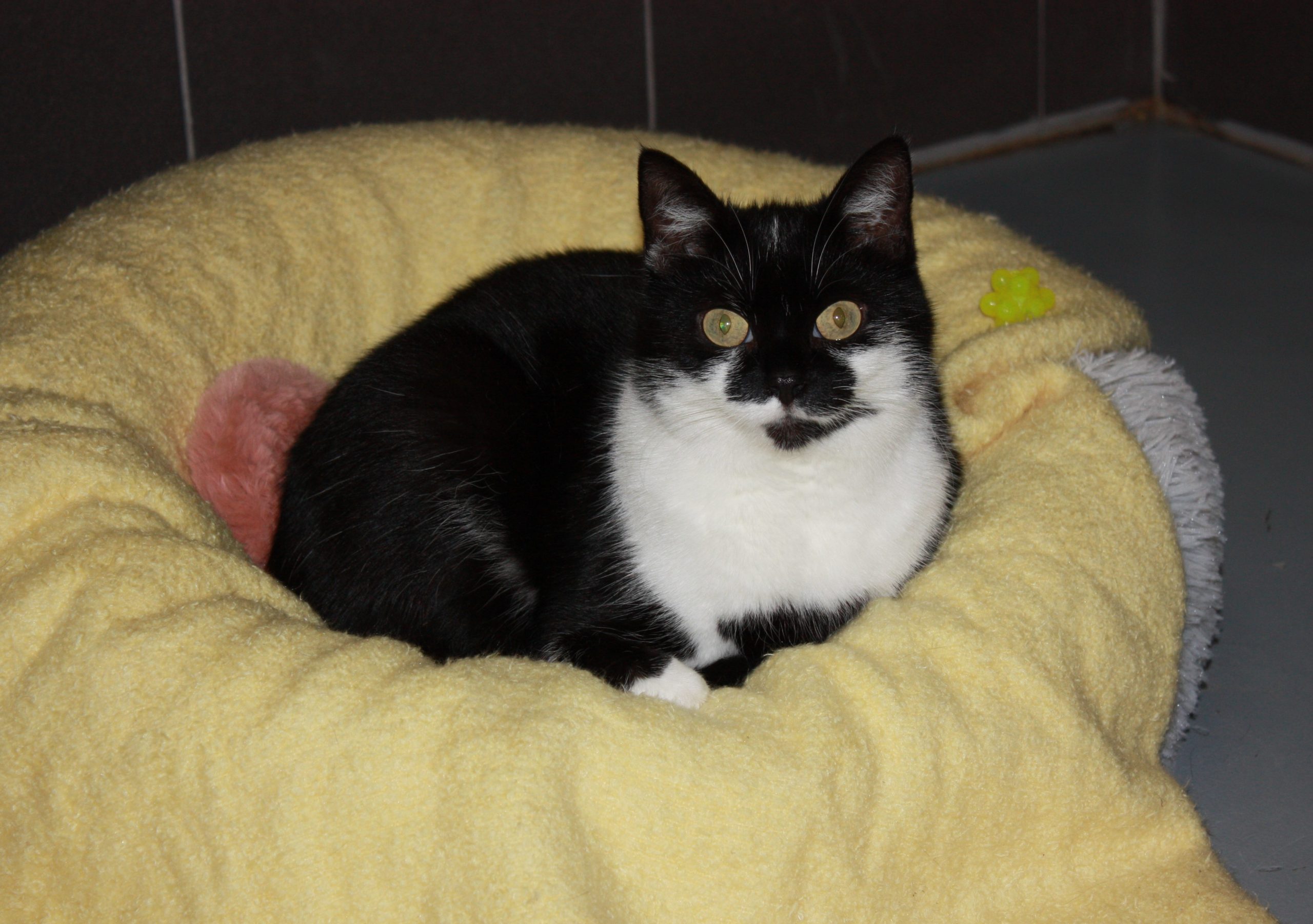 Die schwarz-weiße Nele kam zu uns ins Tierheim und hat unsere Herzen im Sturm erobert. Ihr Alter merkt man der Katzendame nicht wirklich an, und trotz ihrer eher stattlichen Figur – so um die Körpermitte – ist sie erstaunlich beweglich. Und durch die speziell für sie konzipierte „Nele-Diät“ hat sie sogar schon ein wenig abgenommen…