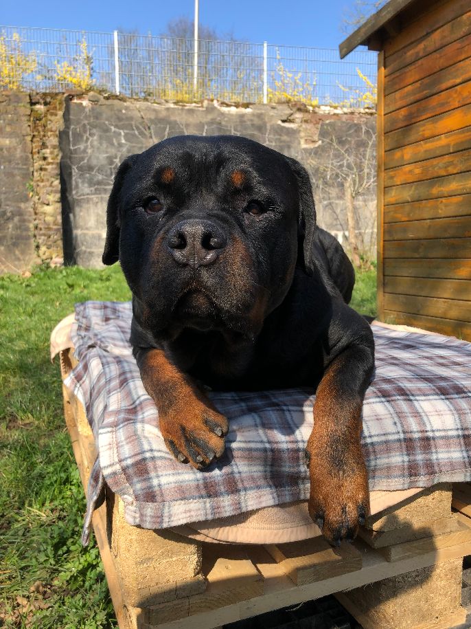 So freuen wir uns sehr, dass ein rottweilererfahrenes Paar mit seiner Rottweilerhündin Nero adoptierte und er nach Mönchengladbach in sein neues, artgerechtes Zuhause ziehen durfte!