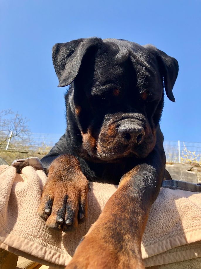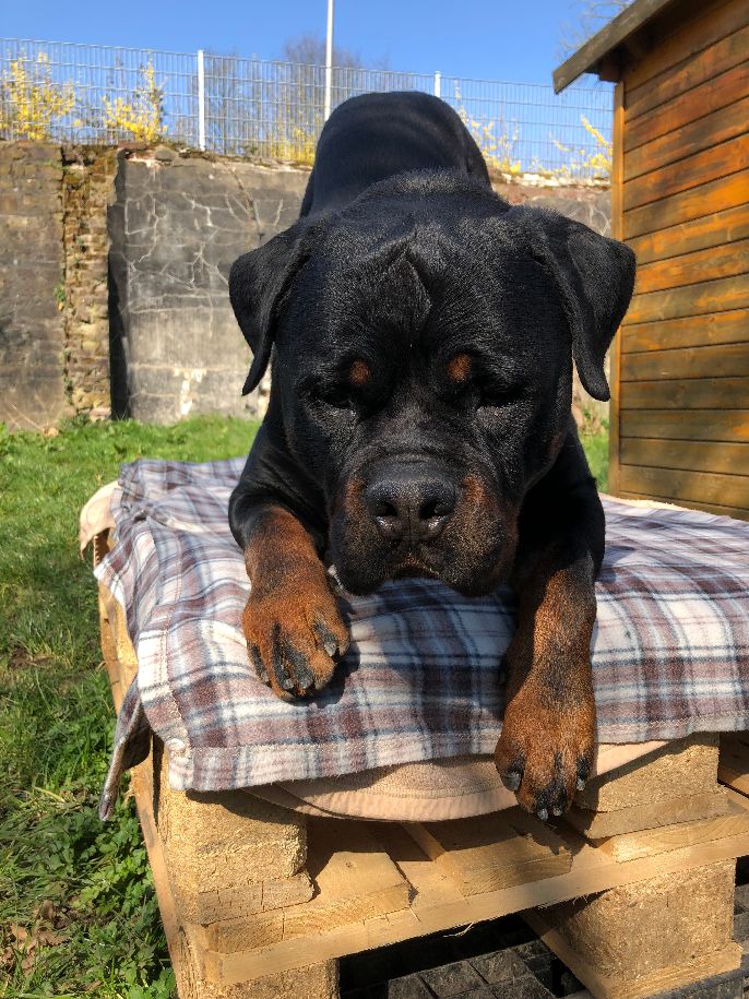 Nero, unser Rotteweilerrüde, kam übers Amt zu uns! Nach einer Eingewöhnungszeit zeigte er sich bei uns als netter Kerl, mit typischen Rottweilereigenschaften!