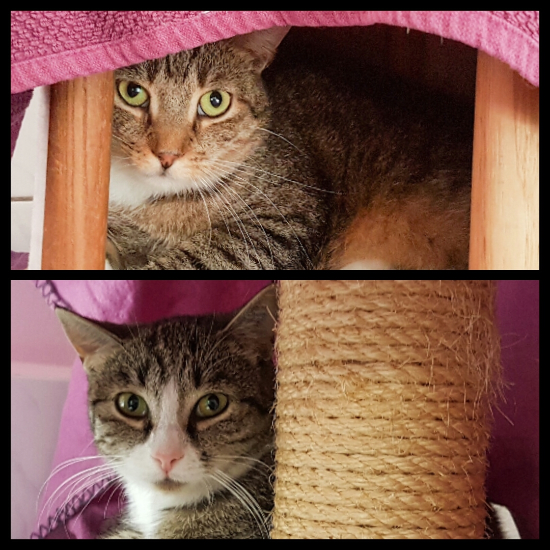 Bei unseren Besuchen im Tierheim konnten wir nur ahnen, wie die beiden aussehen, weil sie sich immer gut versteckt hielten.