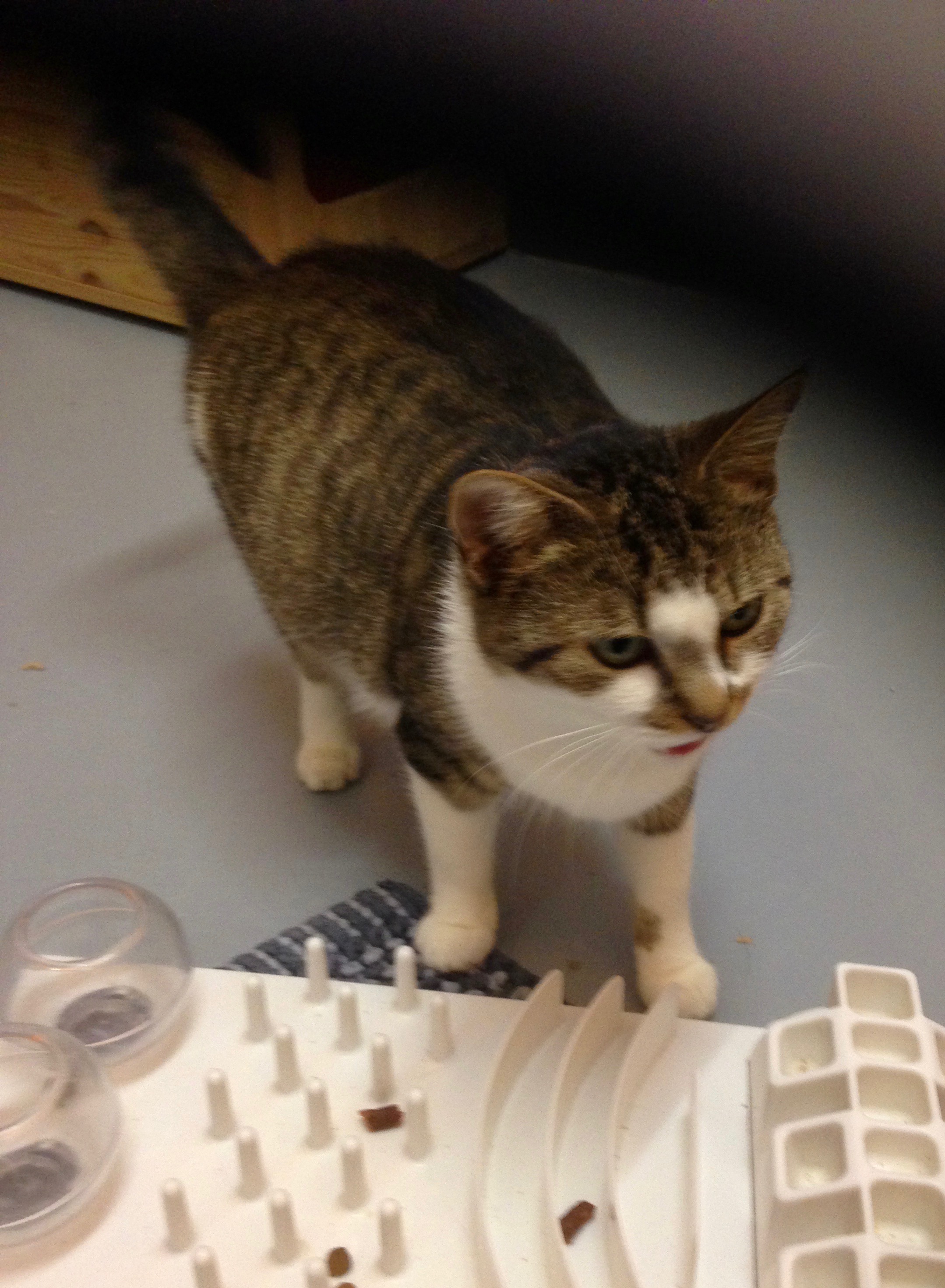 Wir haben uns mittlerweile auch schon ein wenig an unser modernes, selbstreinigendes elektrisches Katzenklo gewöhnt – aber ein bisschen suspekt ist mir das immer noch, daher beobachte ich nach dem Toilettengang immer sehr genau wohin mein “Poop“ verschwindet … aber ich bevorzuge normale Katzenklos und habe meinen Menschen deutlich gemacht, dass ich sogar zwei davon brauche, also stehen jetzt drei Toiletten in Papas Arbeitszimmer – ein elektrisches und zwei Haubentoiletten – und Papa musste ganz schön kreativ werden, weil ich nicht nur Steh- sondern auch Rauspinklerin – bin.