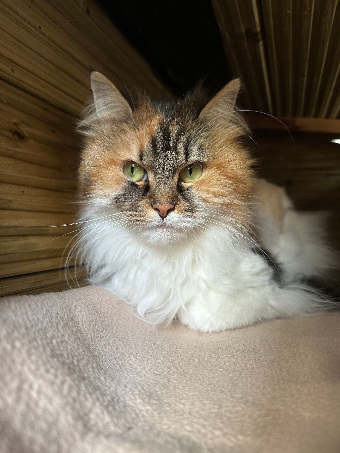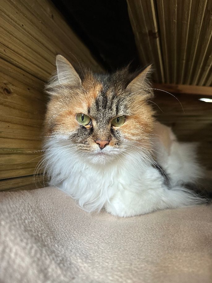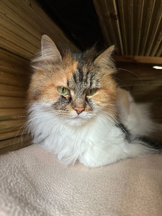 Quitte kam als Fundkatze zu uns ins Tierheim und war sehr verwahrlos. Ihr komplettes Fell bestand nur aus Filzplatten und musste erstmal komplett runtergeschoren werden. Es stellte sich heraus, dass sie seit 3 Jahren vermisst wird, doch leider hatten sich die Lebensumstände der Familie so verändert, dass sie Quitte nun nicht mehr in ihr altes Zuhause zurück konnte.